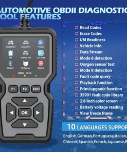 أداة فحص تشخيص أعطال السيارات الاحترافية OBD2، كاشف أعطال المحرك يعمل بمنفذ USB، قارئ أكواد، جهاز اختبار البطارية، حالة الاستعداد I/M، ماسح ضوئي للأكواد، يدعم 10 لغات، بدون بطارية