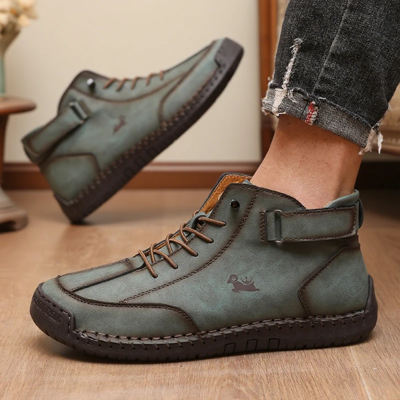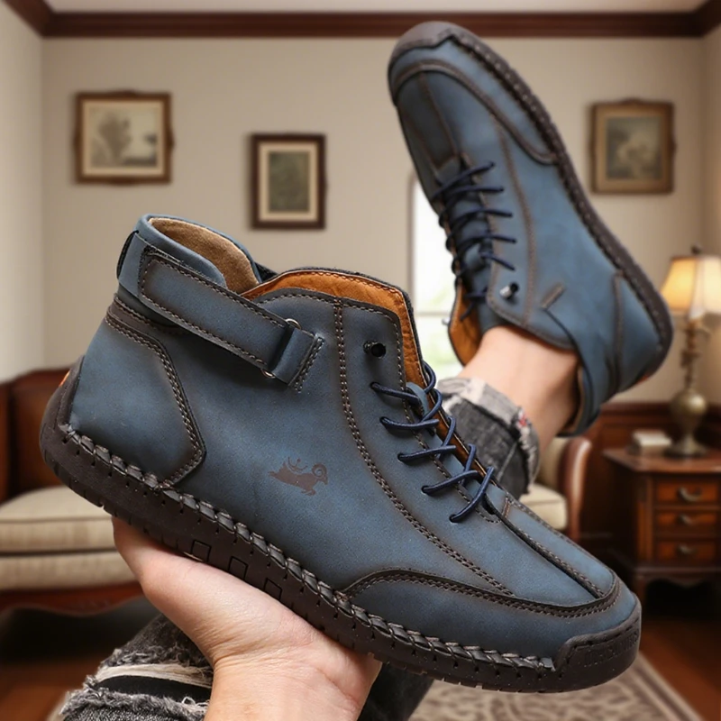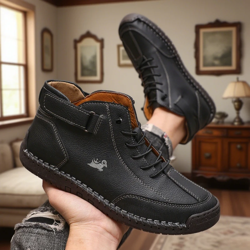 جديد الرجال اليدوية الجلود حذاء كاجوال موضة حذاء من الجلد الأعمال في الهواء الطلق أحذية لينة أوم الكلاسيكية الكاحل عدم الانزلاق الشقق الخف