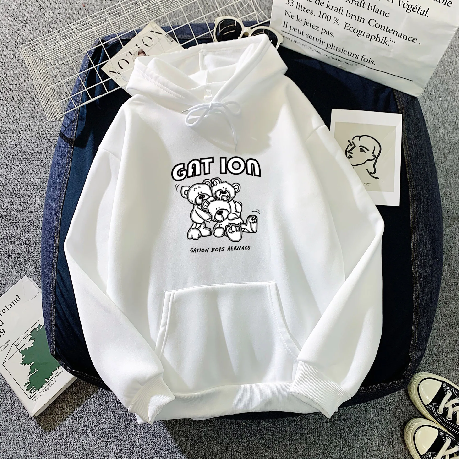 WalnutHuTaoFleece مقنعين السترة أزياء الاتجاه فضفاضة مقنعين سترة رياضية للجنسين