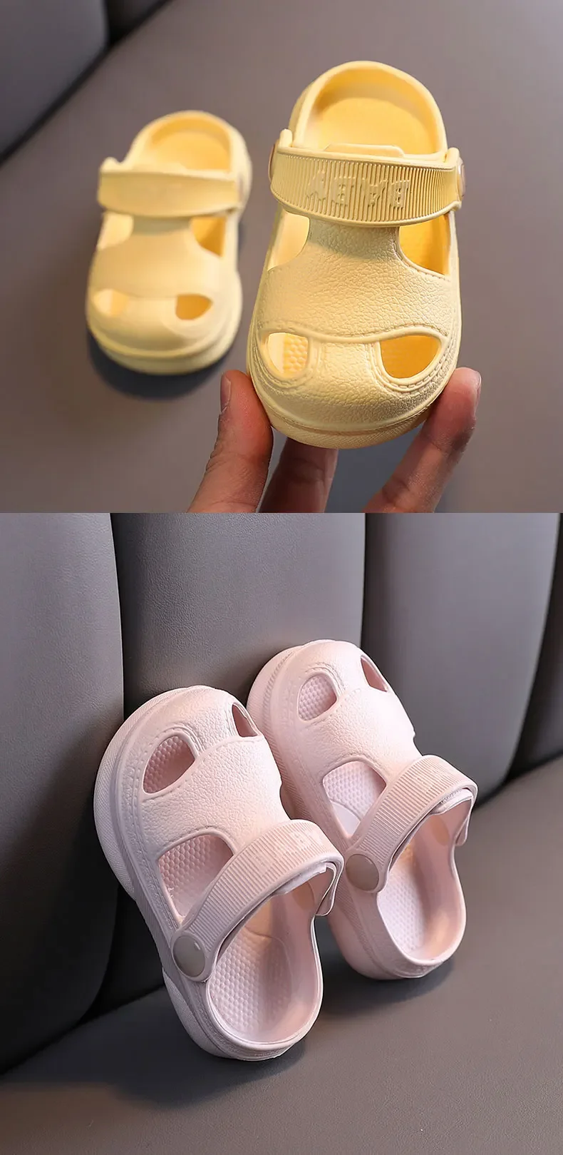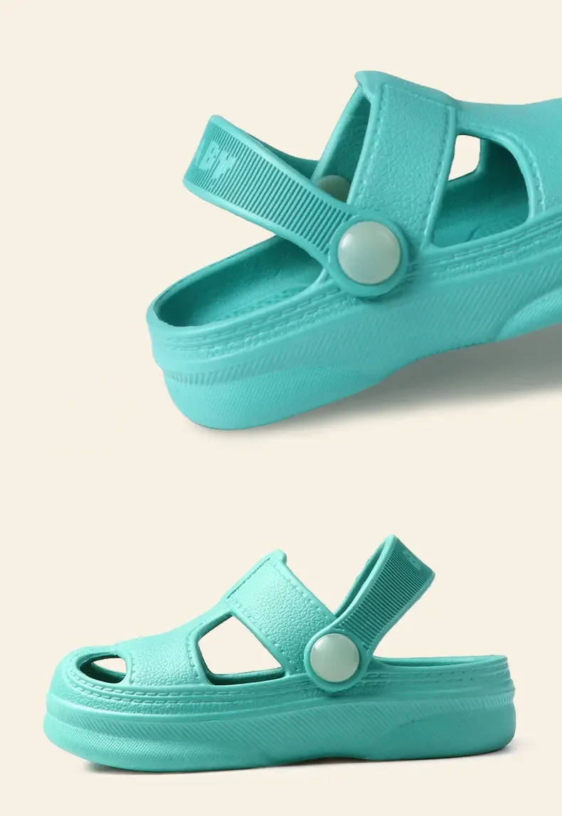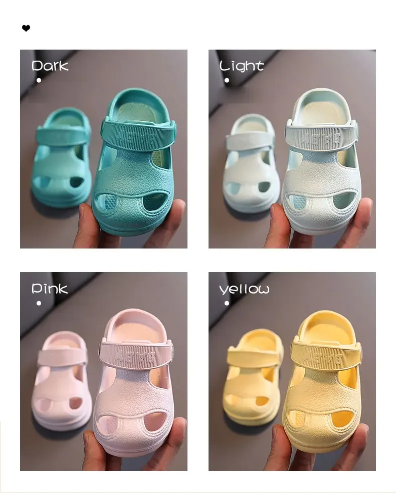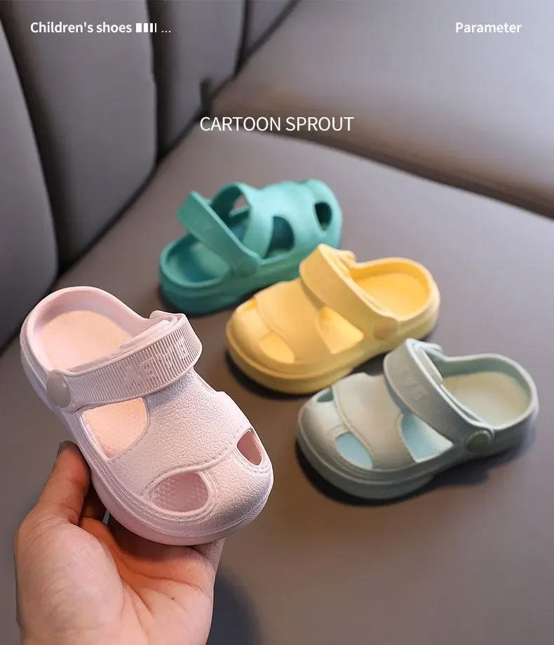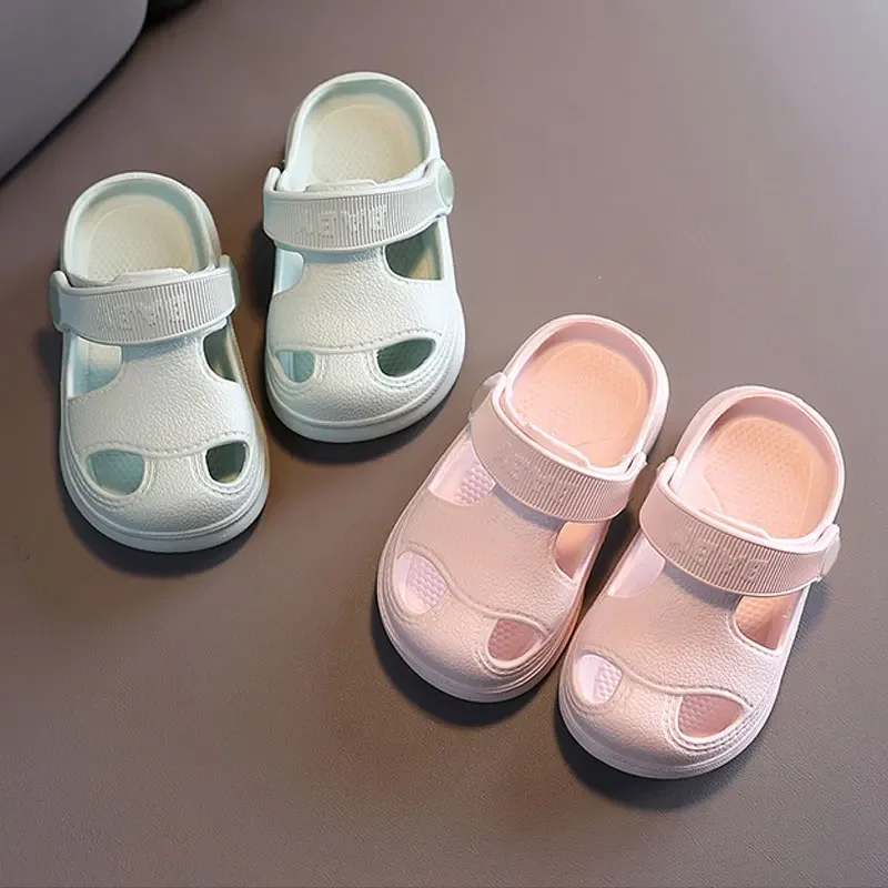 صنادل أطفال صيفية شباشب ناعمة مضادة للانزلاق مصنوعة من مادة EVA بلون سادة تصميم فتحة للأطفال على الشاطئ الرملي للأولاد والبنات أحذية أطفال