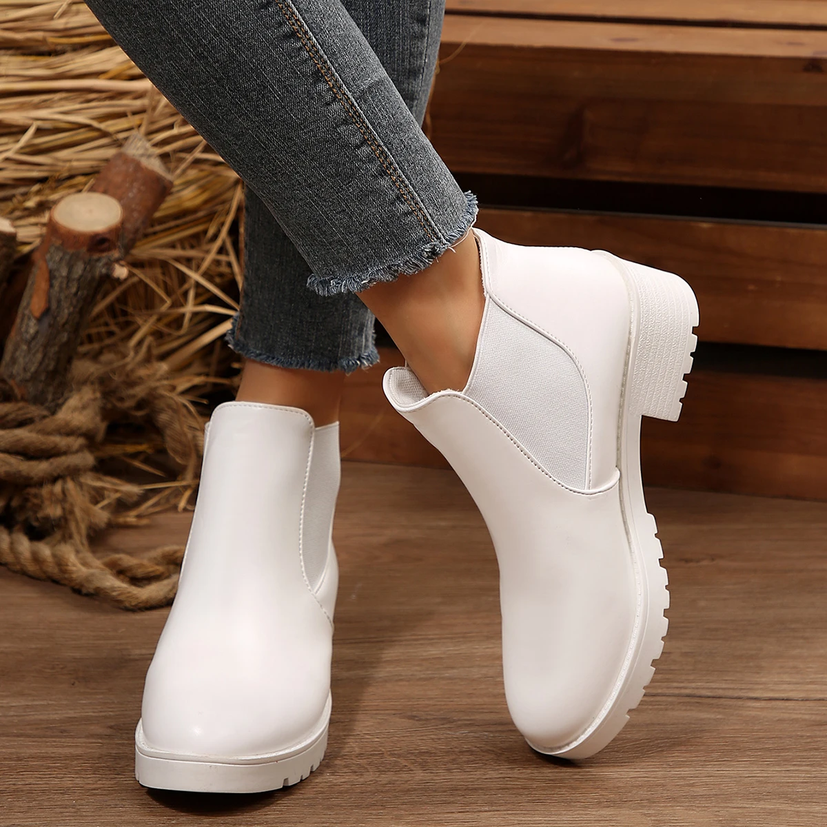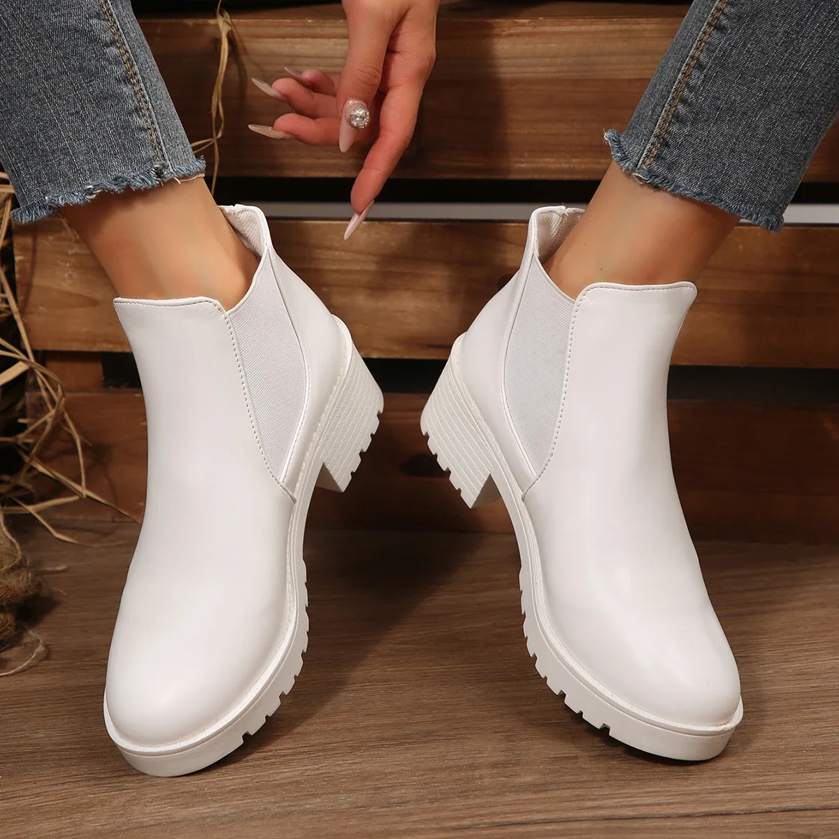 أحذية نسائية عصرية ومريحة بنعل متوسط للخريف والشتاء بمقدمة مستديرة أحذية فارس مريحة بنعل سميك كاجوال