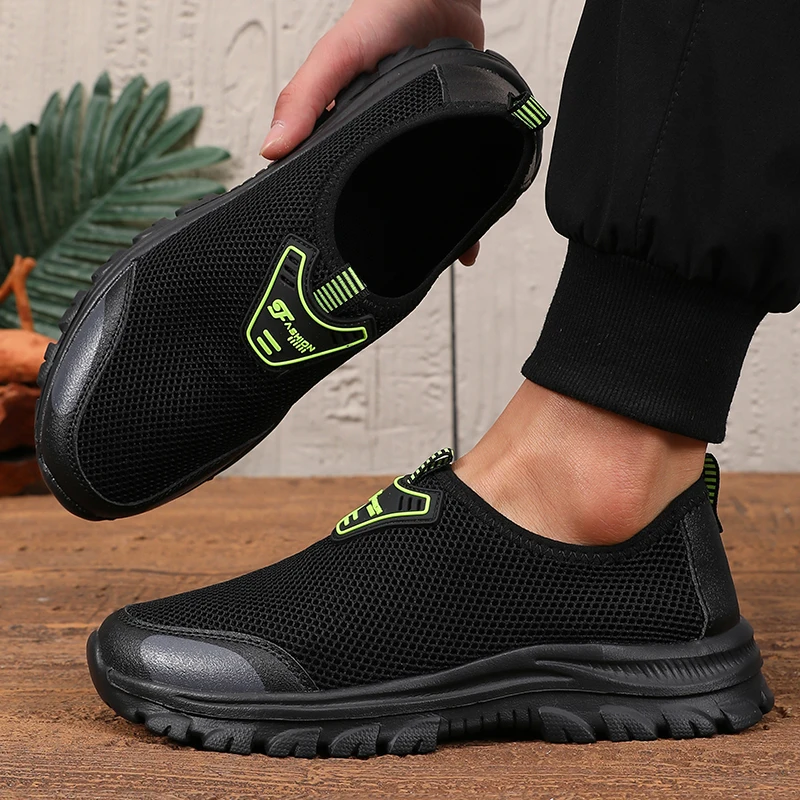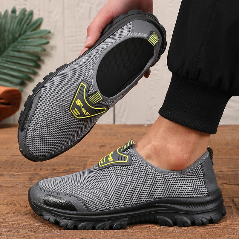 أحذية رجالية مسطحة سهلة الارتداء مع تصميم عصري شبكي بسيط، أحذية مشي مريحة وخفيفة الوزن وخفيفة الوزن في الهواء الطلق