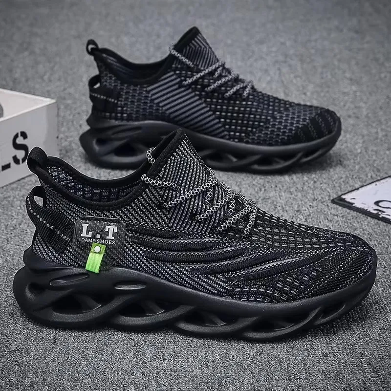 أحذية رياضية رجالية خفيفة الوزن محبوكة قابلة للتنفس مبطنة أحذية المشي المرنة اللياقة البدنية التدريب في الهواء الطلق كرة السلة حذاء رجالي