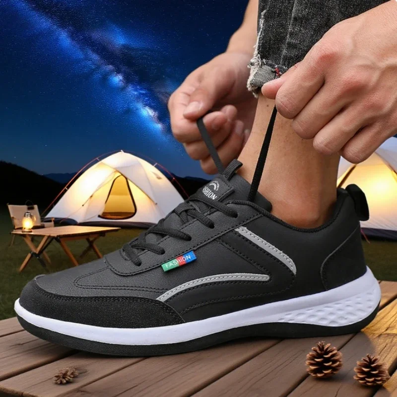 أحذية رياضية رجالية رفيعة قابلة للتنفس من جلد البولي يوريثان أحذية تسلق للرجال في الهواء الطلق نعل مطاطي ناعم للركض والرحلات والمشي حذاء رياضي