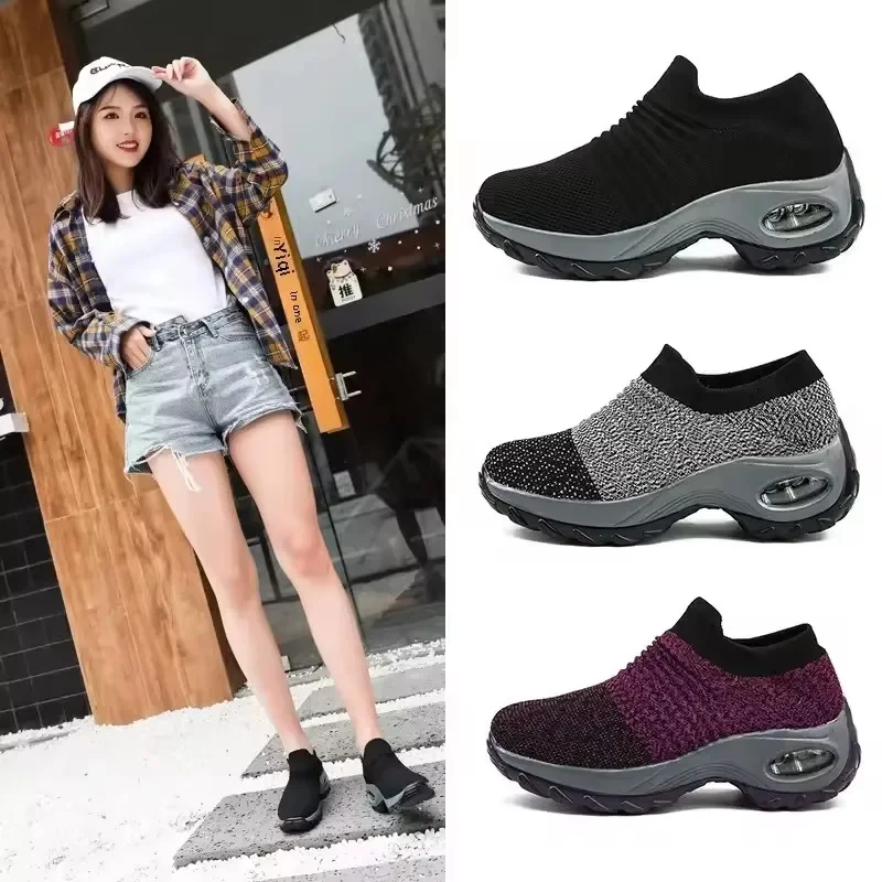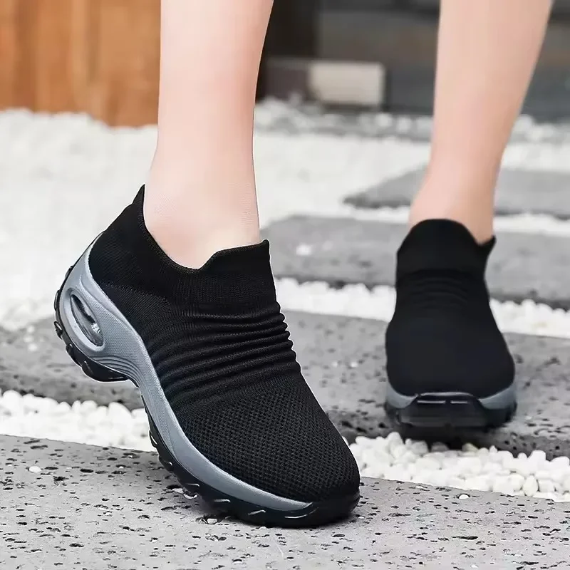 أحذية نسائية ذات نعل سميك عالي الجودة، هيكل مسامي، مطاط متين، طوال اليوم، أحذية نسائية كاجوال مريحة