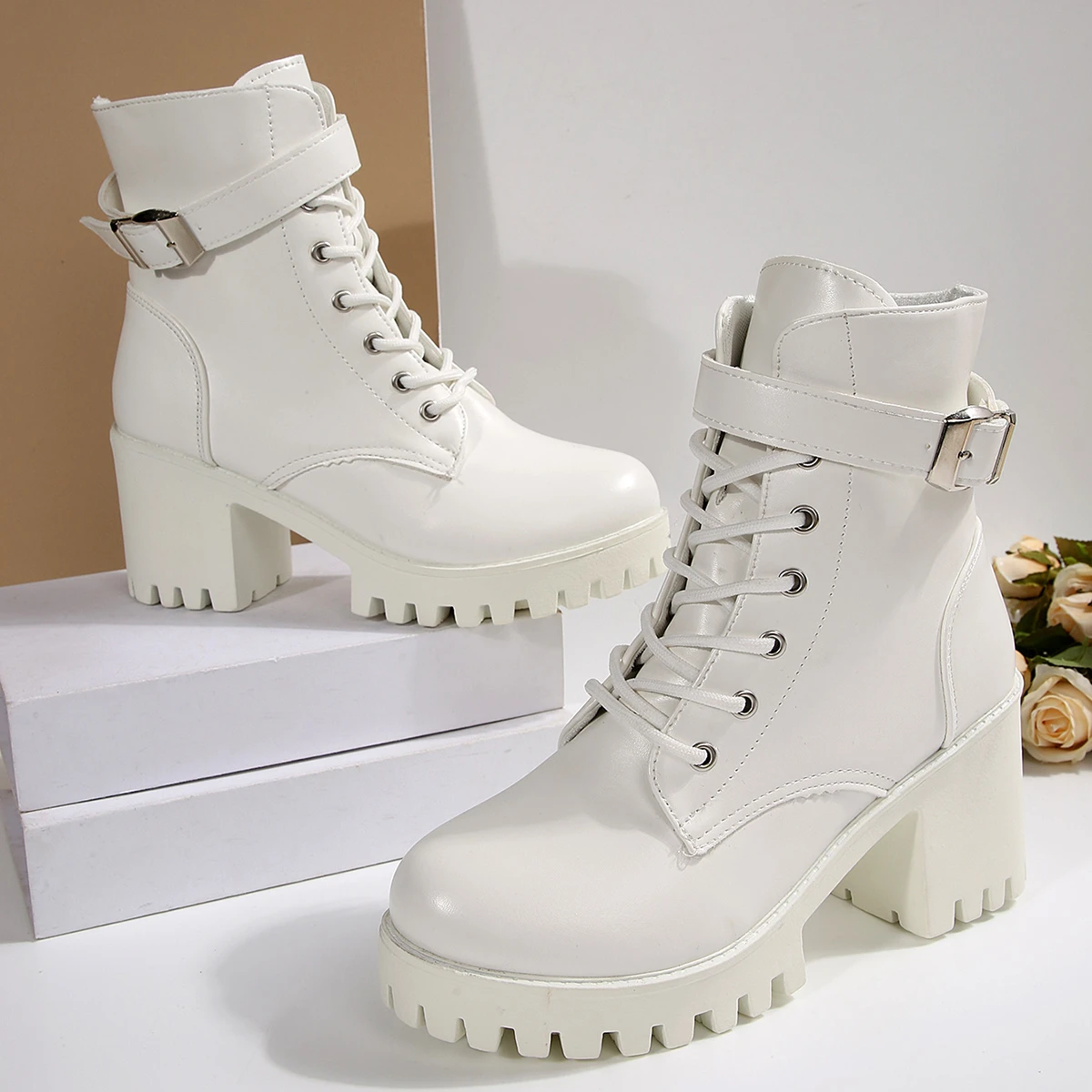 أحذية نسائية عصرية ومريحة جديدة مقاومة للاهتراء وغير قابلة للانزلاق أحذية شتوية بمقدمة مستديرة وأربطة وسحاب أحذية غير رسمية متوسطة الأنبوب