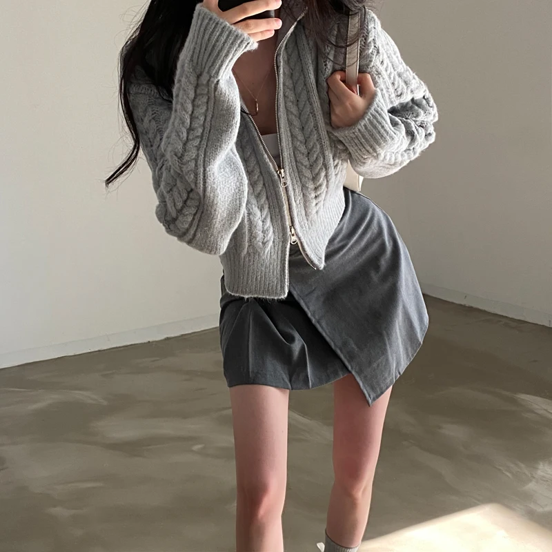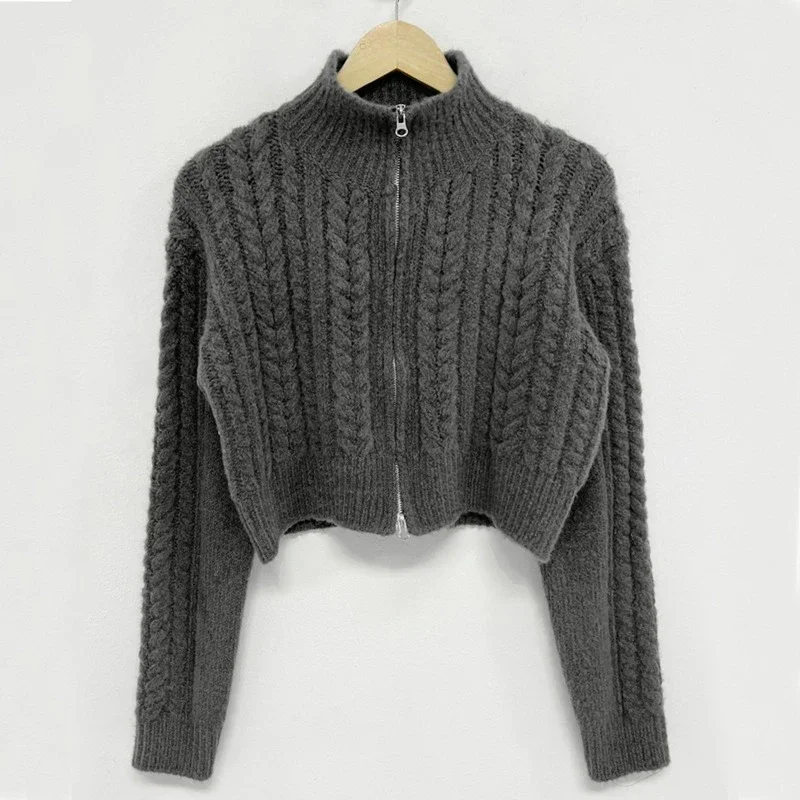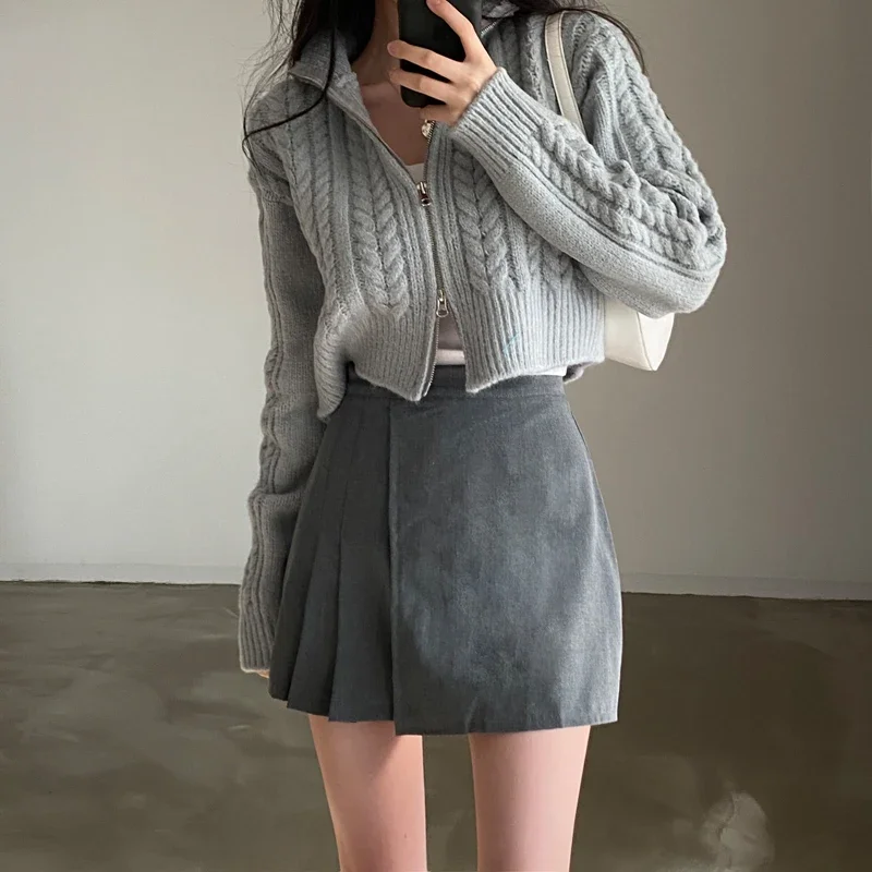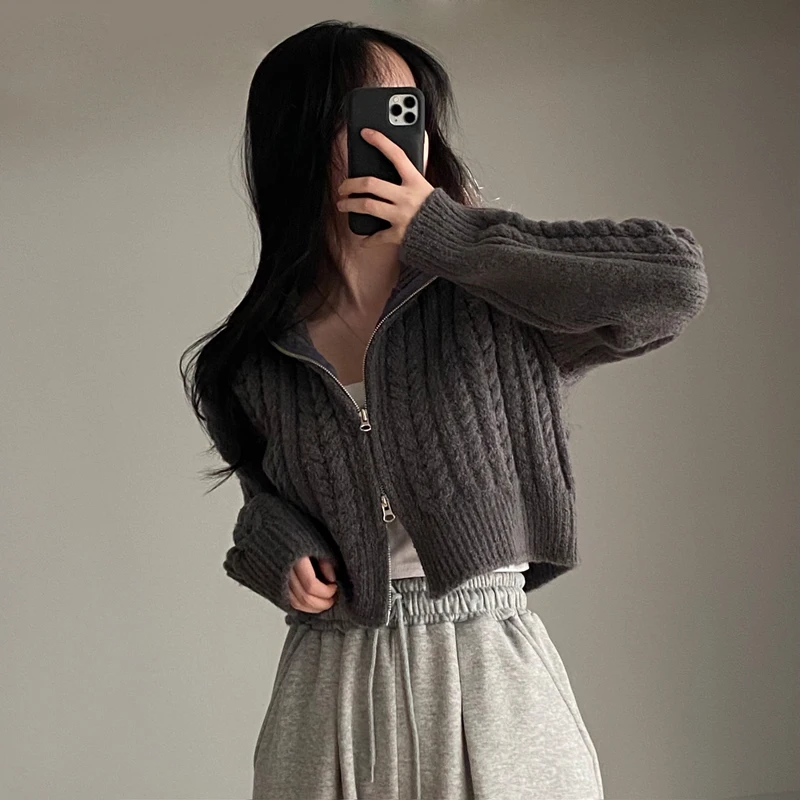 الأساسية تنوعا سترة عادية للنساء خمر الخريف الشتاء الكورية محبوك سترة قصيرة المرأة طويلة الأكمام الصلبة المحاصيل القمم