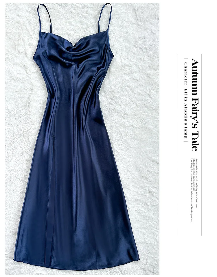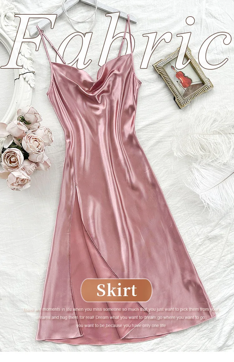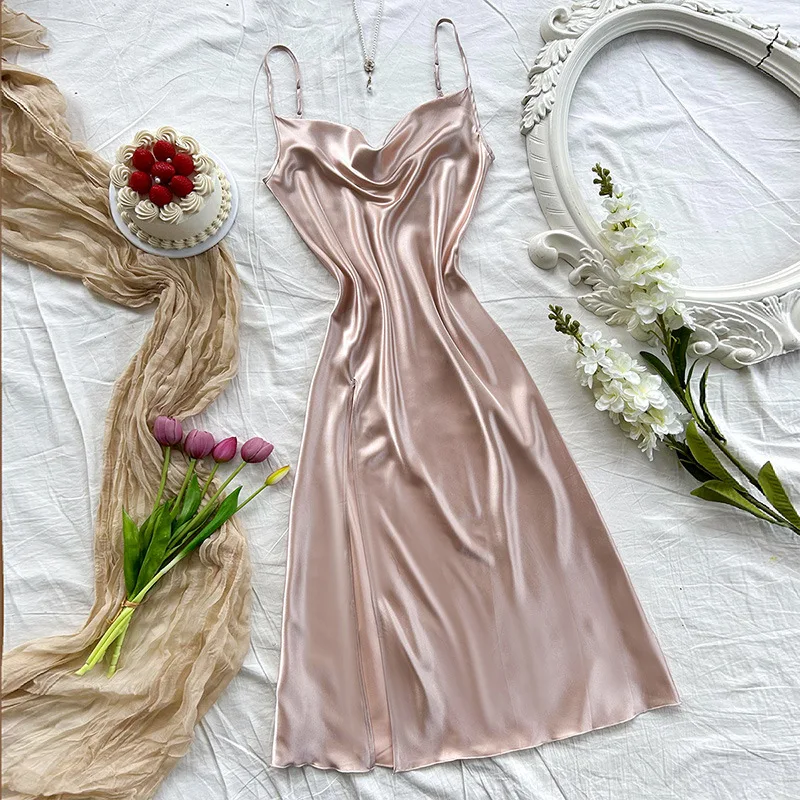 فستان نوم نسائي طويل مثير ، حرير ثلجي ، بيمنامة بحمالة رباط مغرية ، ملابس منزلية أنيقة ، الصيف ،