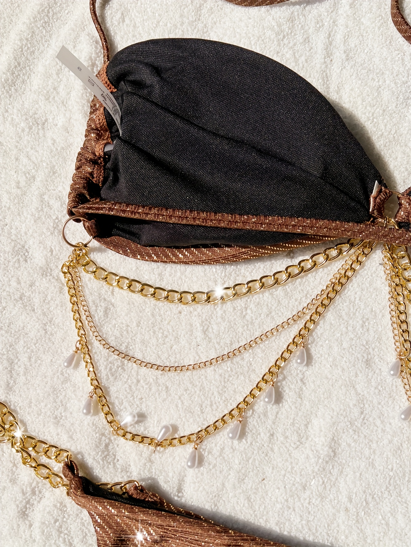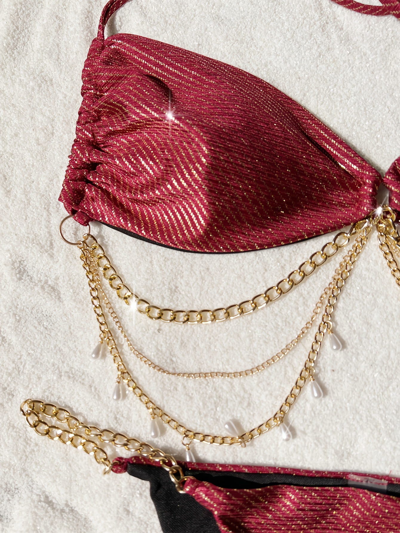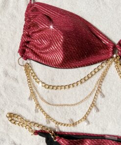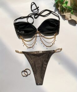 بكيني نسائي بدون ظهر بحمالات دانتيل ذهبية وفضية، بيكيني أوروبي مثير
