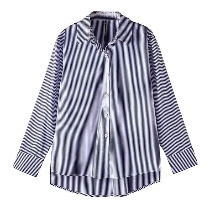 بلوزات نسائية كلاسيكية مخططة لربيع وخريف 2025 من AOSSVIAO قميص نسائي بأكمام طويلة وياقة ثابتة بلوزات فضفاضة