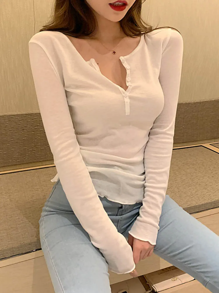 تي شيرت صيفي سادة برقبة دائرية لعام 2025، بلوزة كاجوال بأكمام طويلة للربيع والخريف، ملابس نسائية