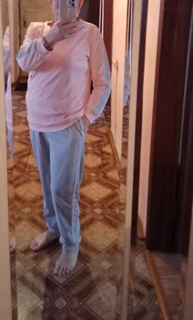 I liked the pajamas. Knitted top, flannel-like fabric bottom. After washing, I slightly shed. In general, everything is fine. Fit my daughter at 46 height 164 weight 70. Sits freely.