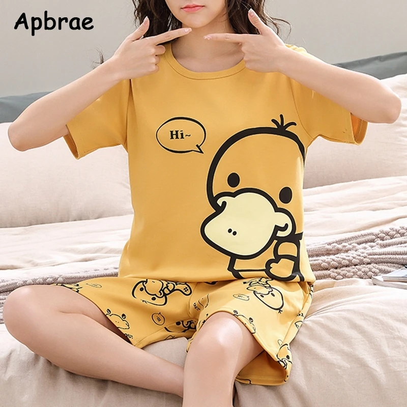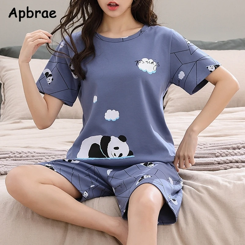 بيجامة قطنية قصيرة الأكمام للنساء