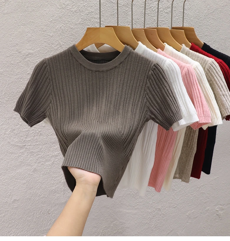 تي شيرت صيفي للنساء كاجوال كوري متماسك ملابس الشارع تي شيرت أساسي متين للشباب ملابس علوية رائعة