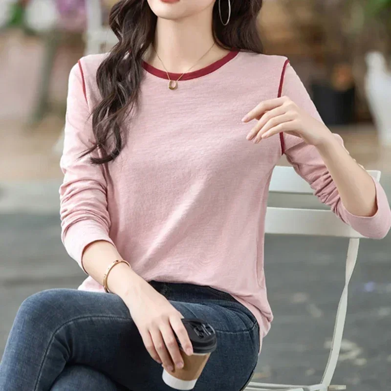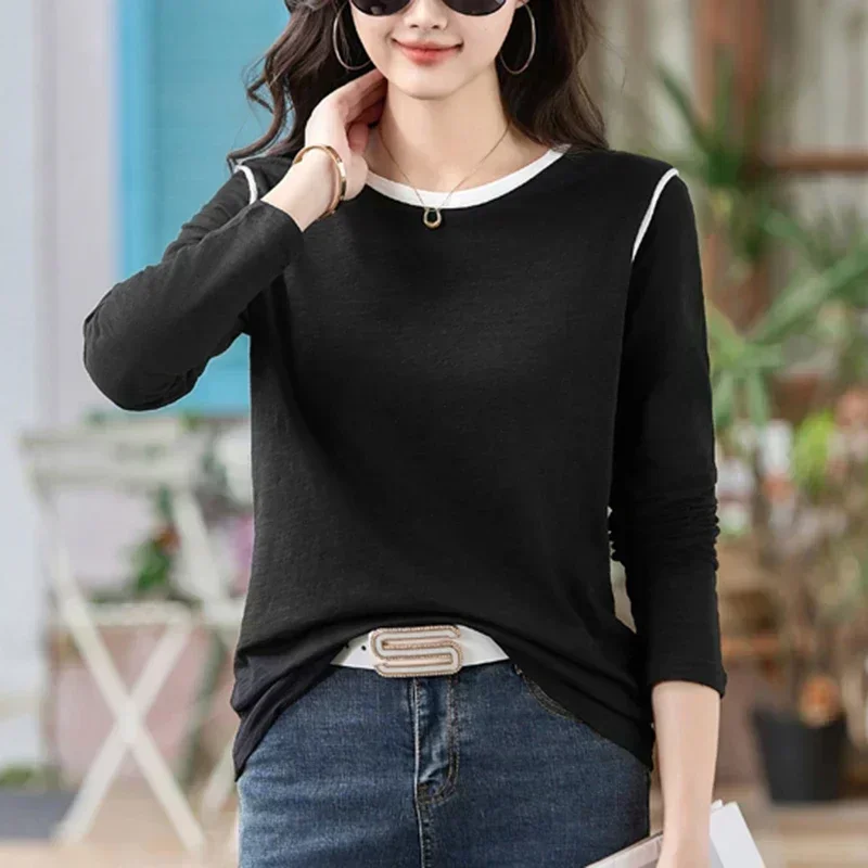 تي شيرت قطني للسيدات تي شيرت غير رسمي للسيدات Y2K ملابس الشارع الشهير تي شيرت أساسي للربيع موضة كورية بأكمام طويلة ملابس نسائية 2025