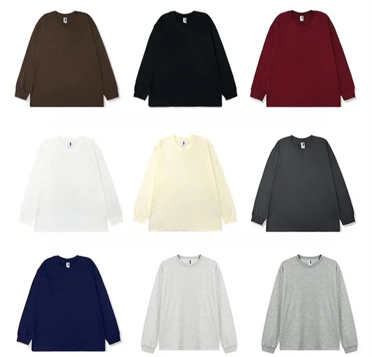 تي شيرت نسائي فضفاض بأكمام طويلة للخريف والشتاء كاجوال بياقة دائرية من القطن الخالص بلوفرات بسيطة متعددة الاستخدامات بطبقة أساسية