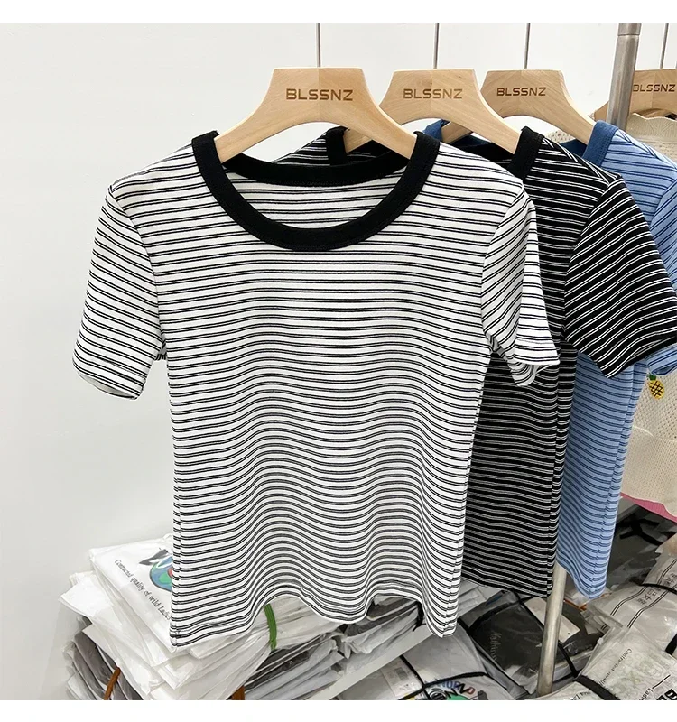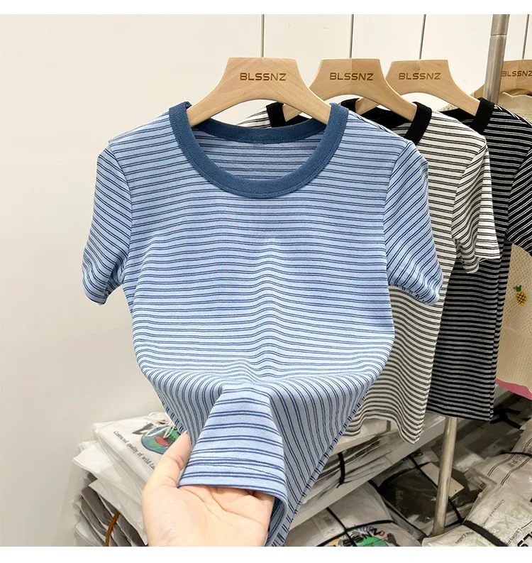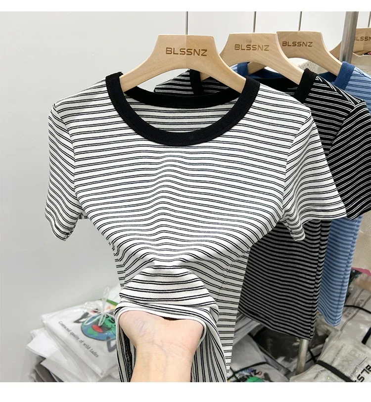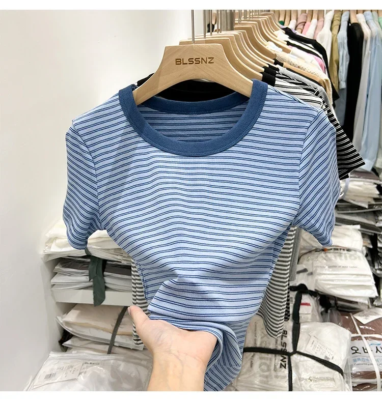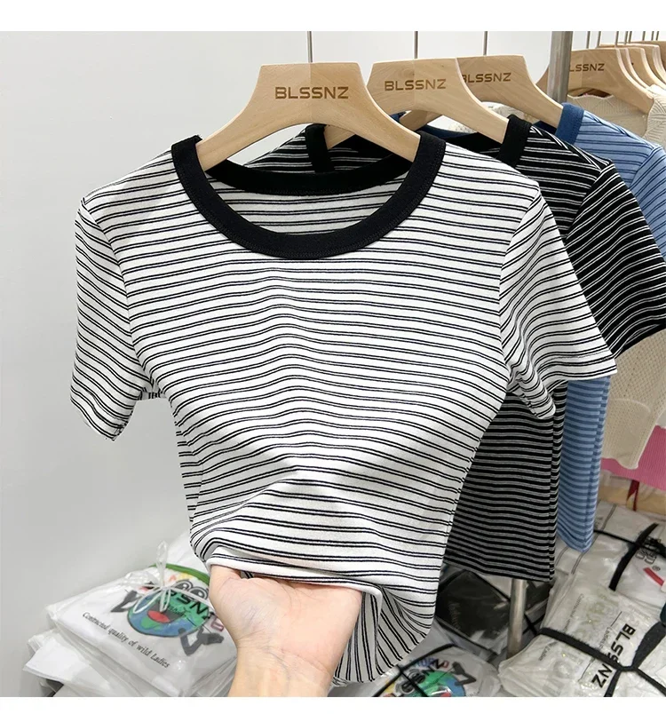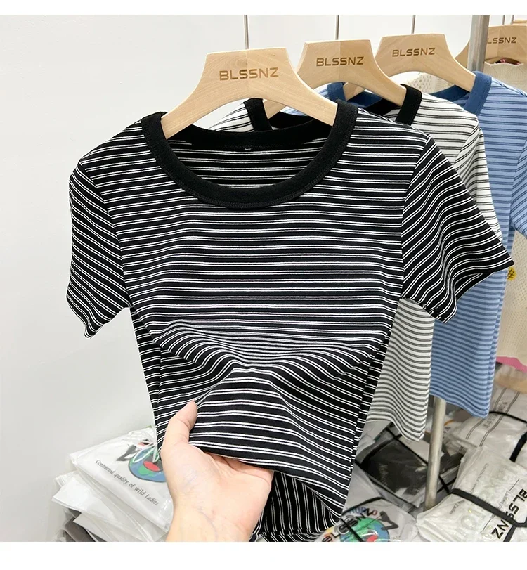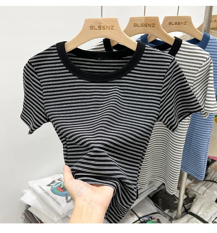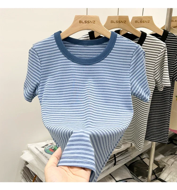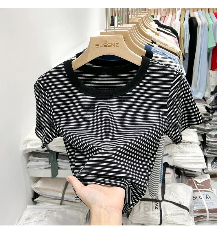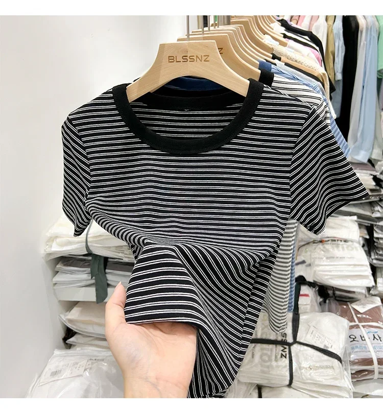 جديد جودة القطن المرأة تي شيرتات قصيرة الاكمام 2025 امرأة الصيف شريط تيز Harajuku Famale بلايز بلايز الفتيات الملابس