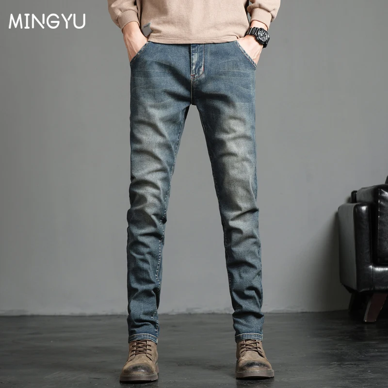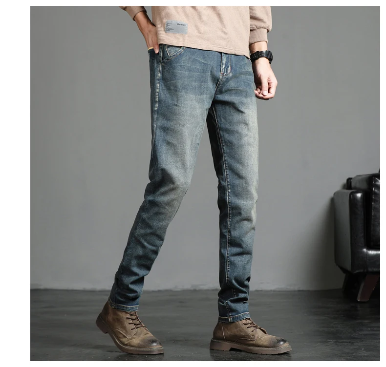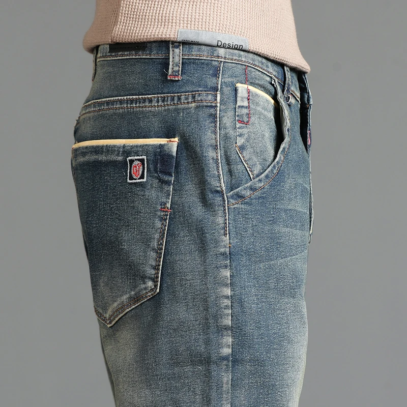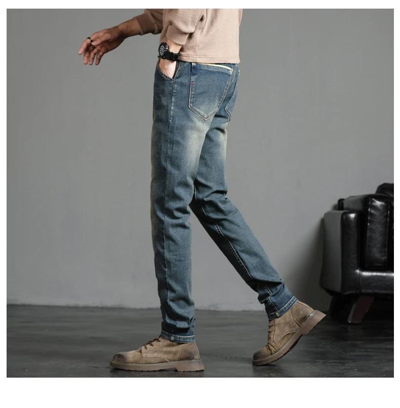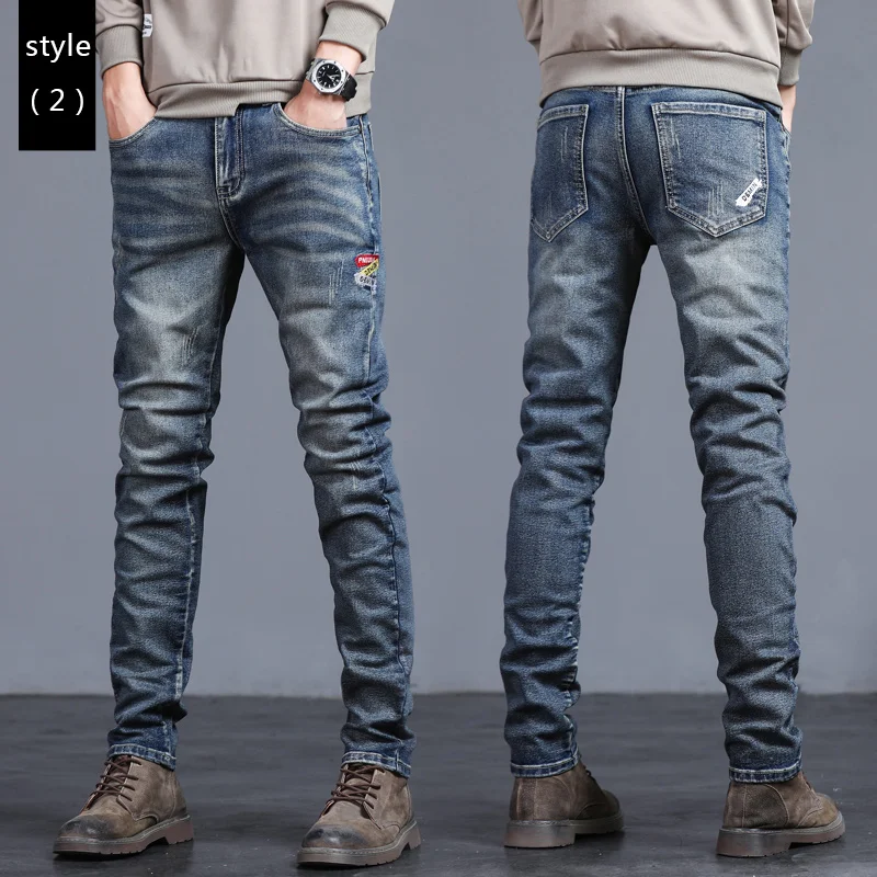 بنطلون رجالي ممزق بأسلوب الشارع، بلون أزرق داكن من الجينز الصناعي، مناسب لجميع الفصول.