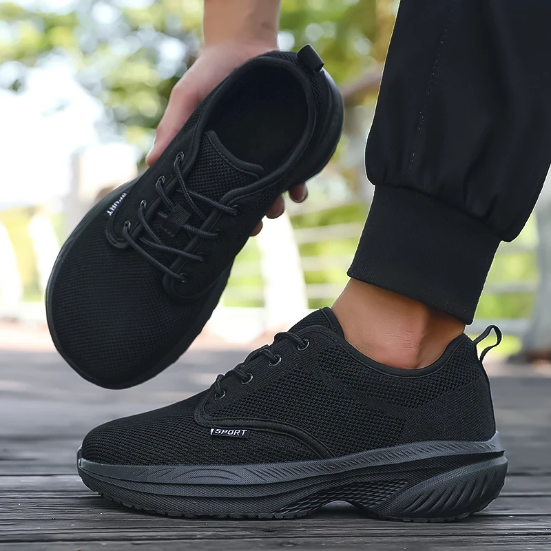 حذاء رجالي ذو نعل عريض آخر يسمح بمرور الهواء ونعل سميك، حذاء رياضي بسيط ومتعدد الاستخدامات ونعل ناعم ومريح واسع القدم للمشي