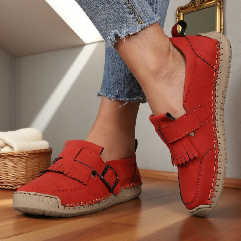 حذاء نسائي مسطح أنيق كلاسيكي بمقدمة مستديرة حذاء بدون كعب عصري جديد قابل للتنفس وغير قابل للانزلاق حذاء قيادة جلدي متعدد الاستخدامات مصنوع يدويًا