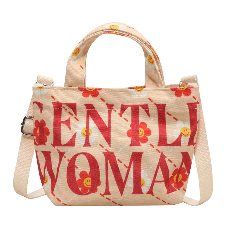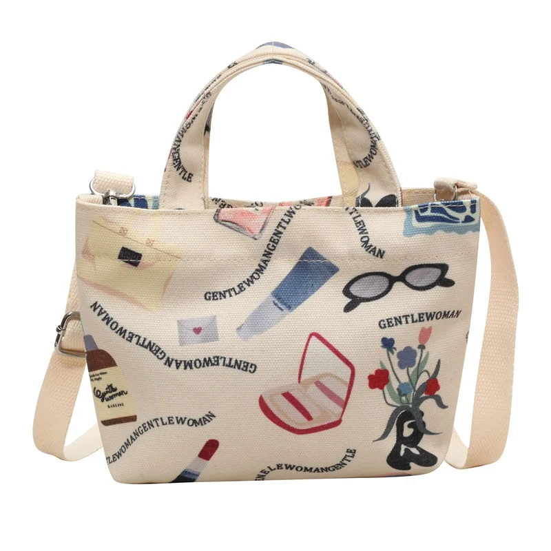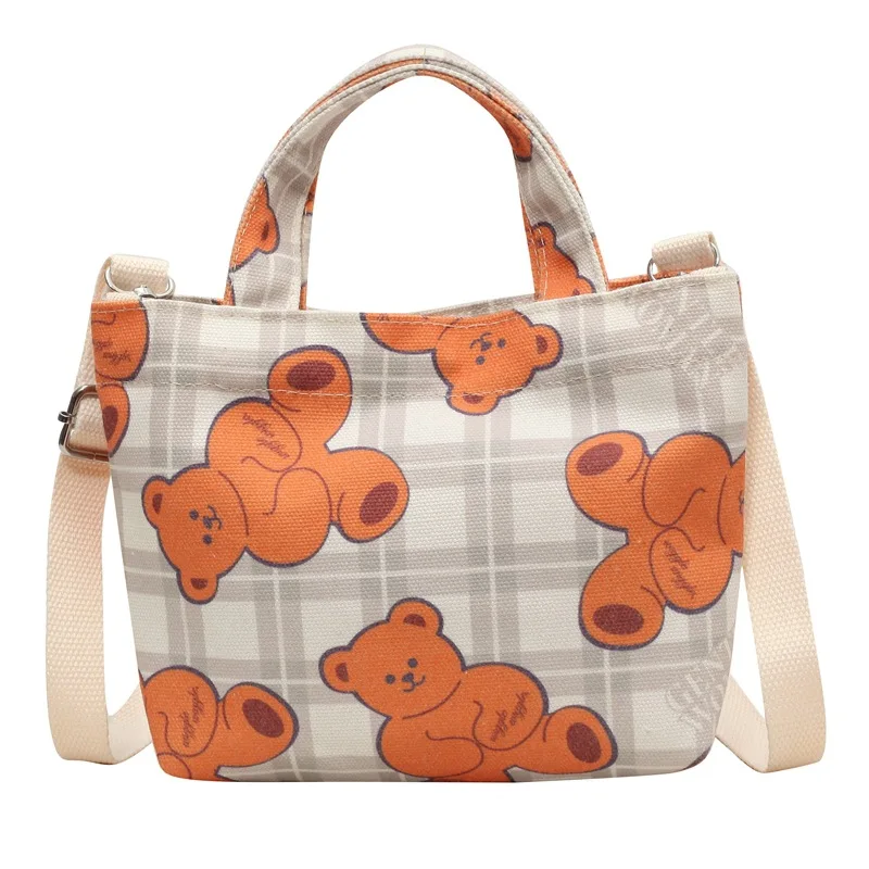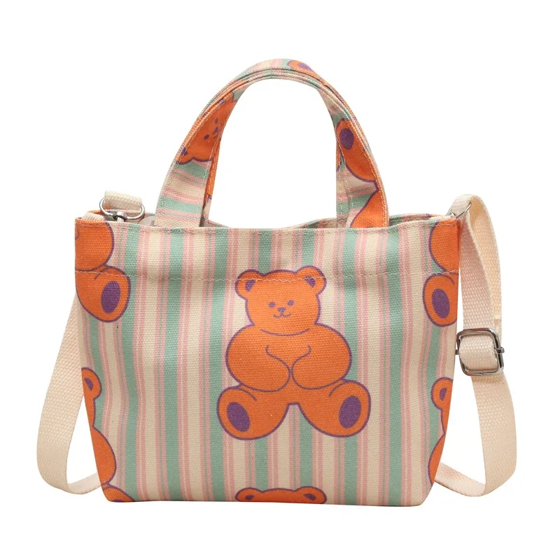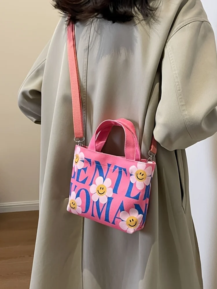 حقيبة قماشية صغيرة لطيفة متقاطعة مع الجسم ، حقيبة حمل بطباعة كرتونية كاواي ، حقيبة كتف ، حقائب يد نسائية أنيقة وحقائب يد