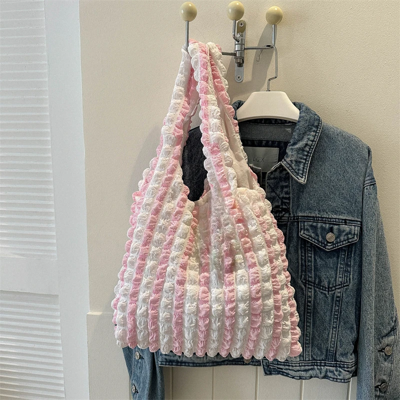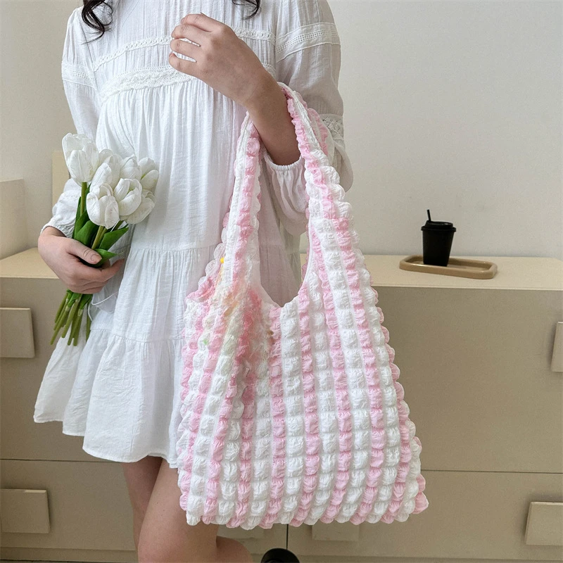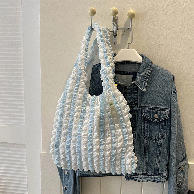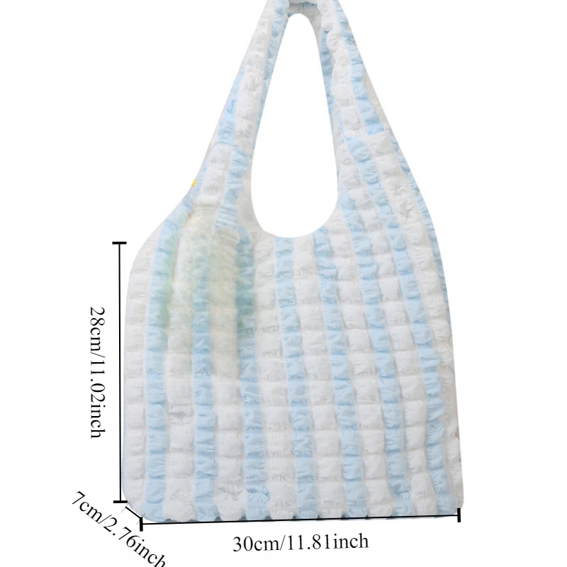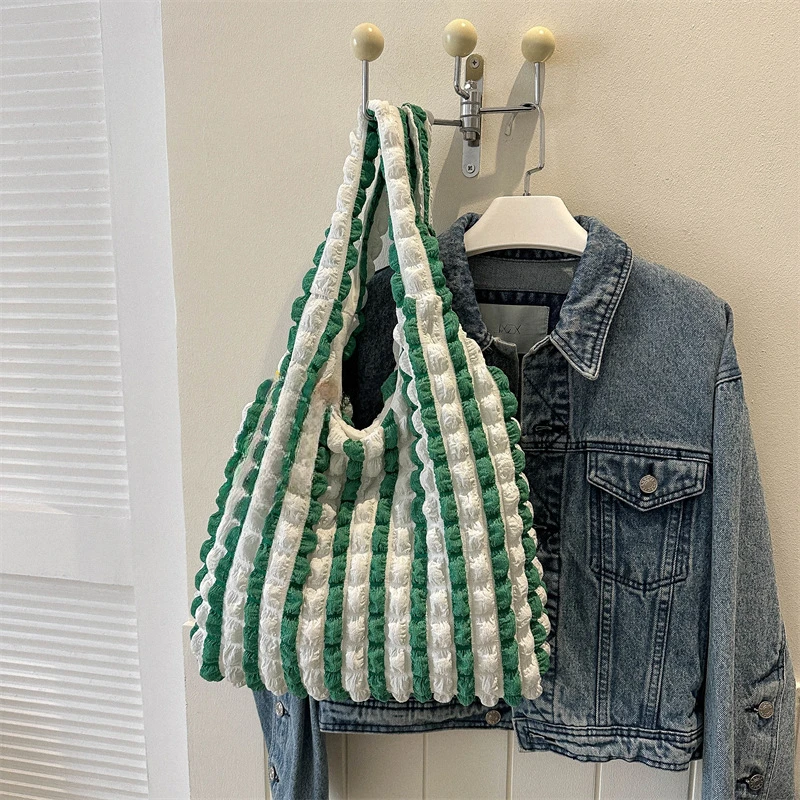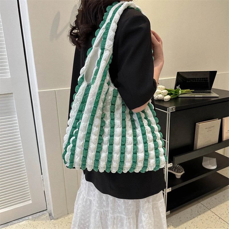 حقيبة كتف عصرية خفيفة الوزن قابلة للطي تحت الإبط، حقيبة يد مخططة للنساء للاستخدام اليومي، حقيبة حمل ذات سعة كبيرة