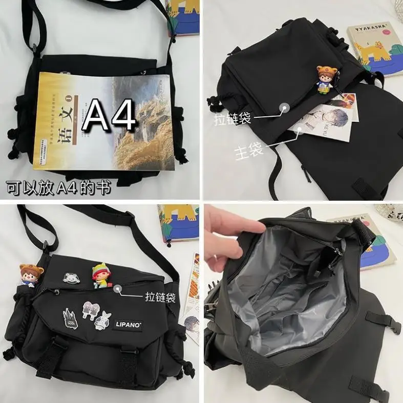 حقيبة كتف عصرية للجنسين ذات سعة كبيرة هاراجوكو يابانية مع شارة حقيبة ساعي حقائب كتب كروس للطلاب المراهقين