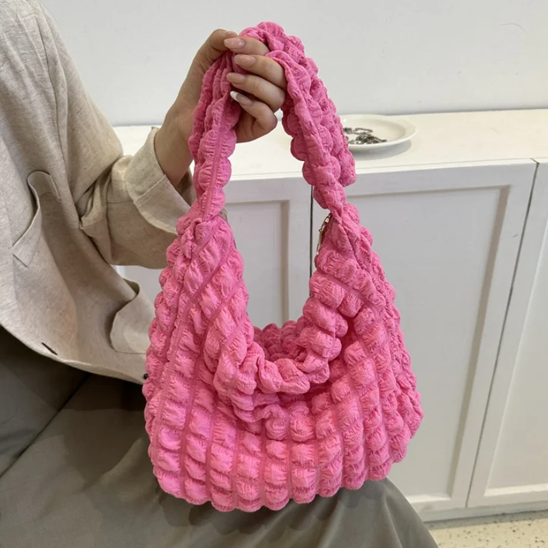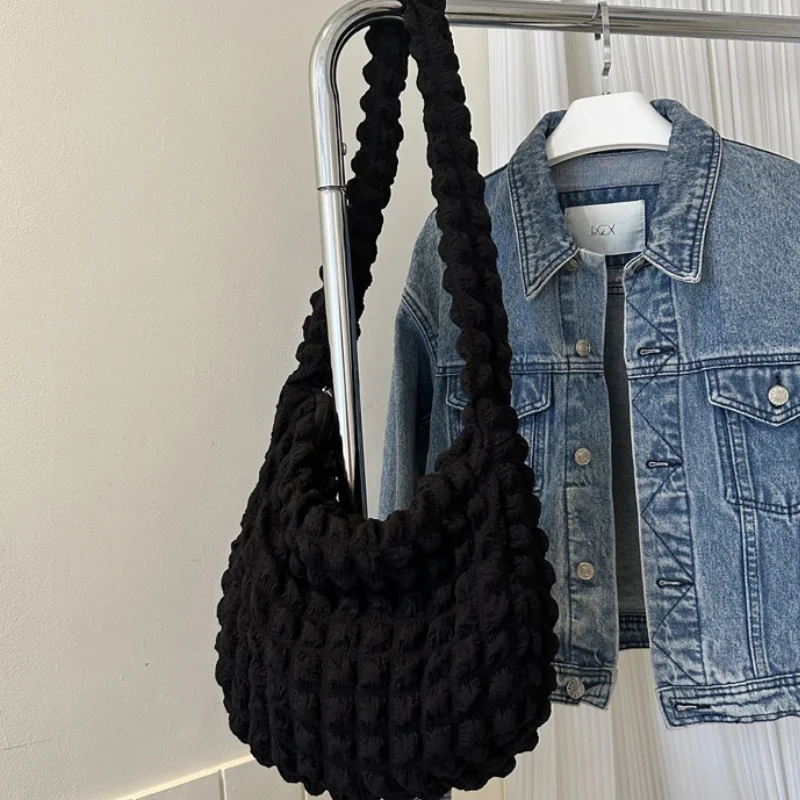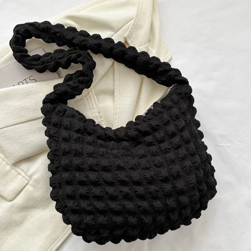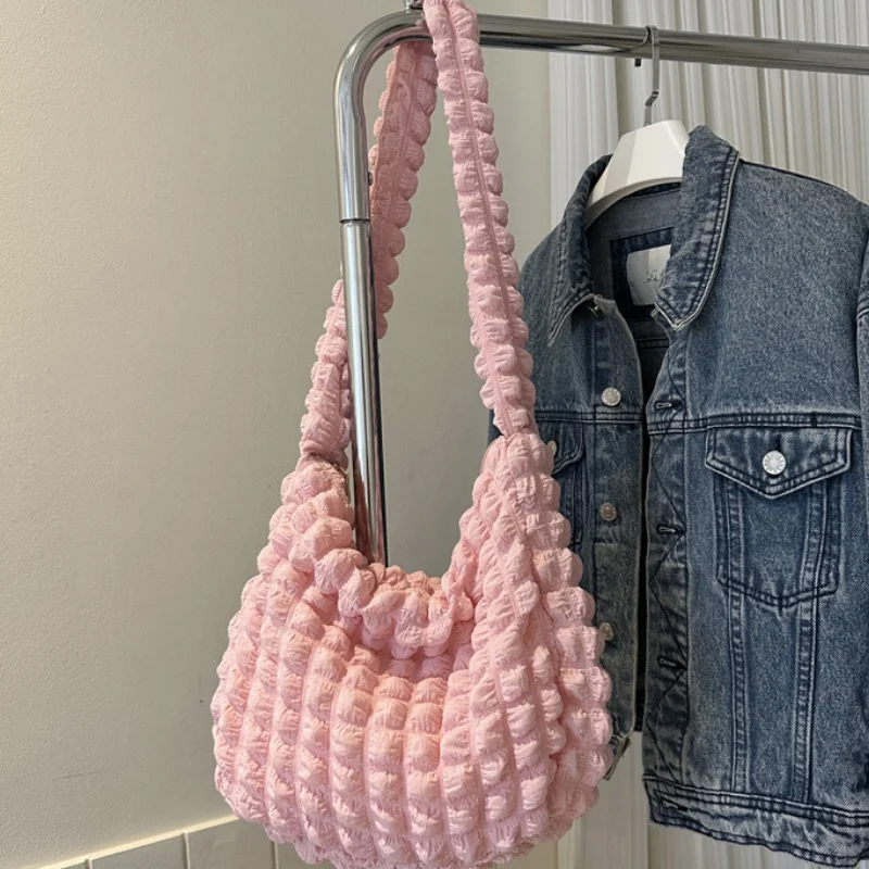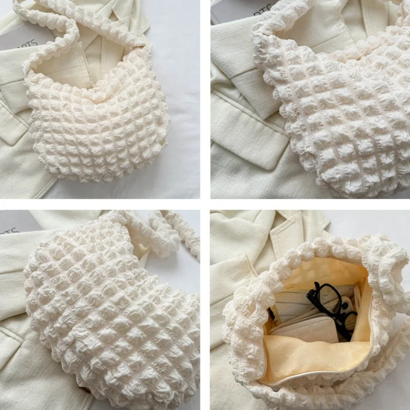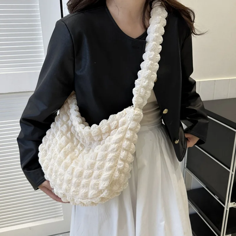 حقيبة كتف مبطنة منقوشة لطيف مطوي فقاعات سعة كبيرة حقيبة تحت الإبط مطرزة بلون حقيبة كروسبودي للنساء