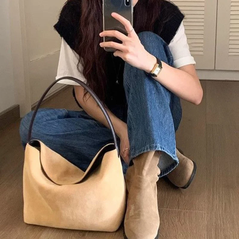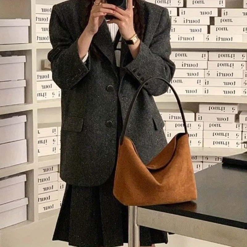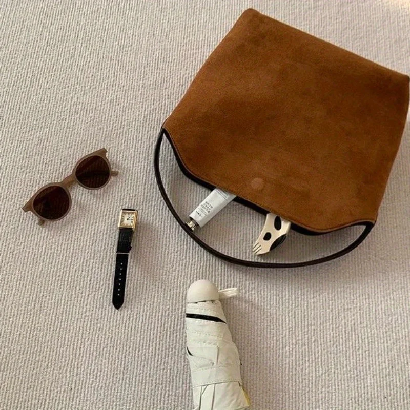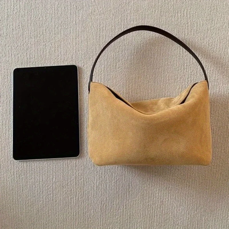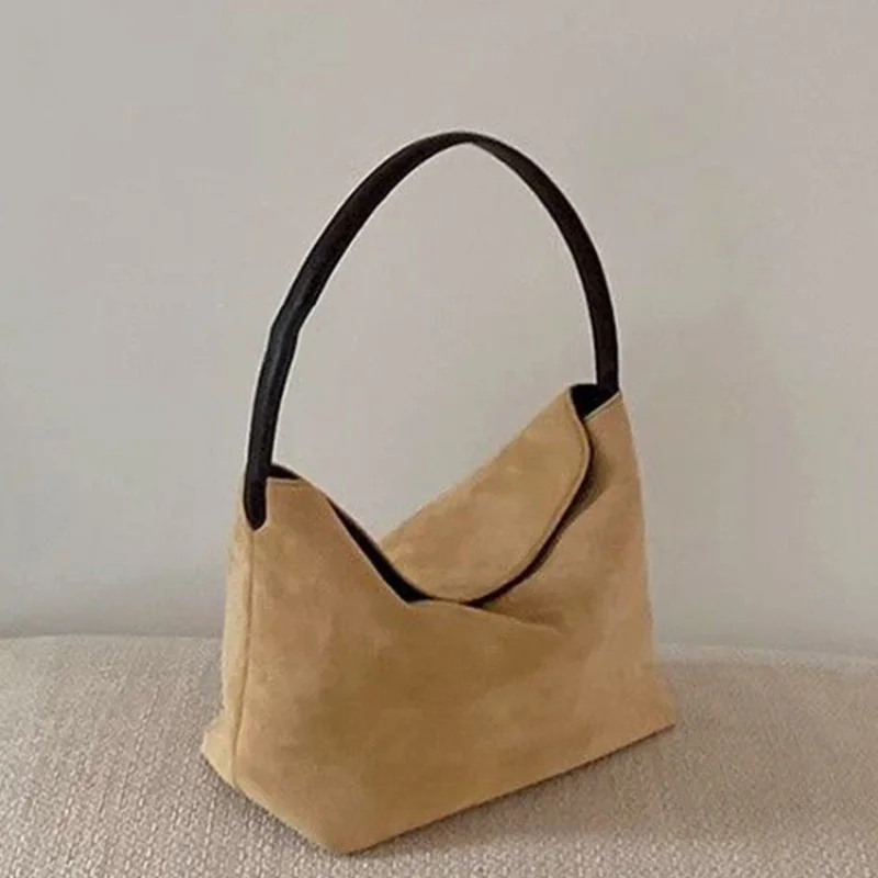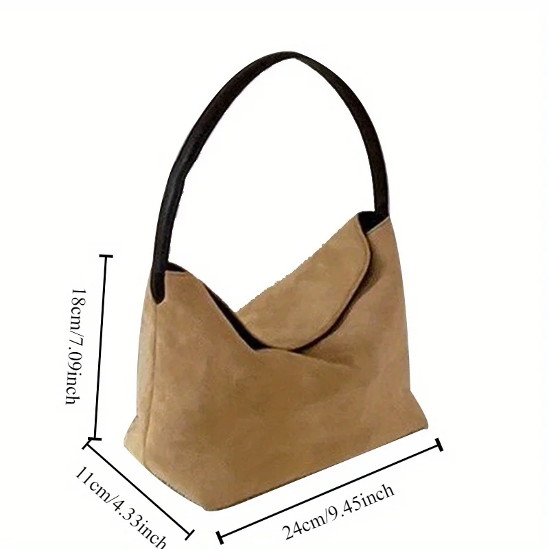 حقيبة كتف نسائية عصرية، طراز قديم، حقيبة يد كاجوال من جلد الغزال، بطانة بوليستر، متوفرة باللون البني الفاتح والبني الداكن