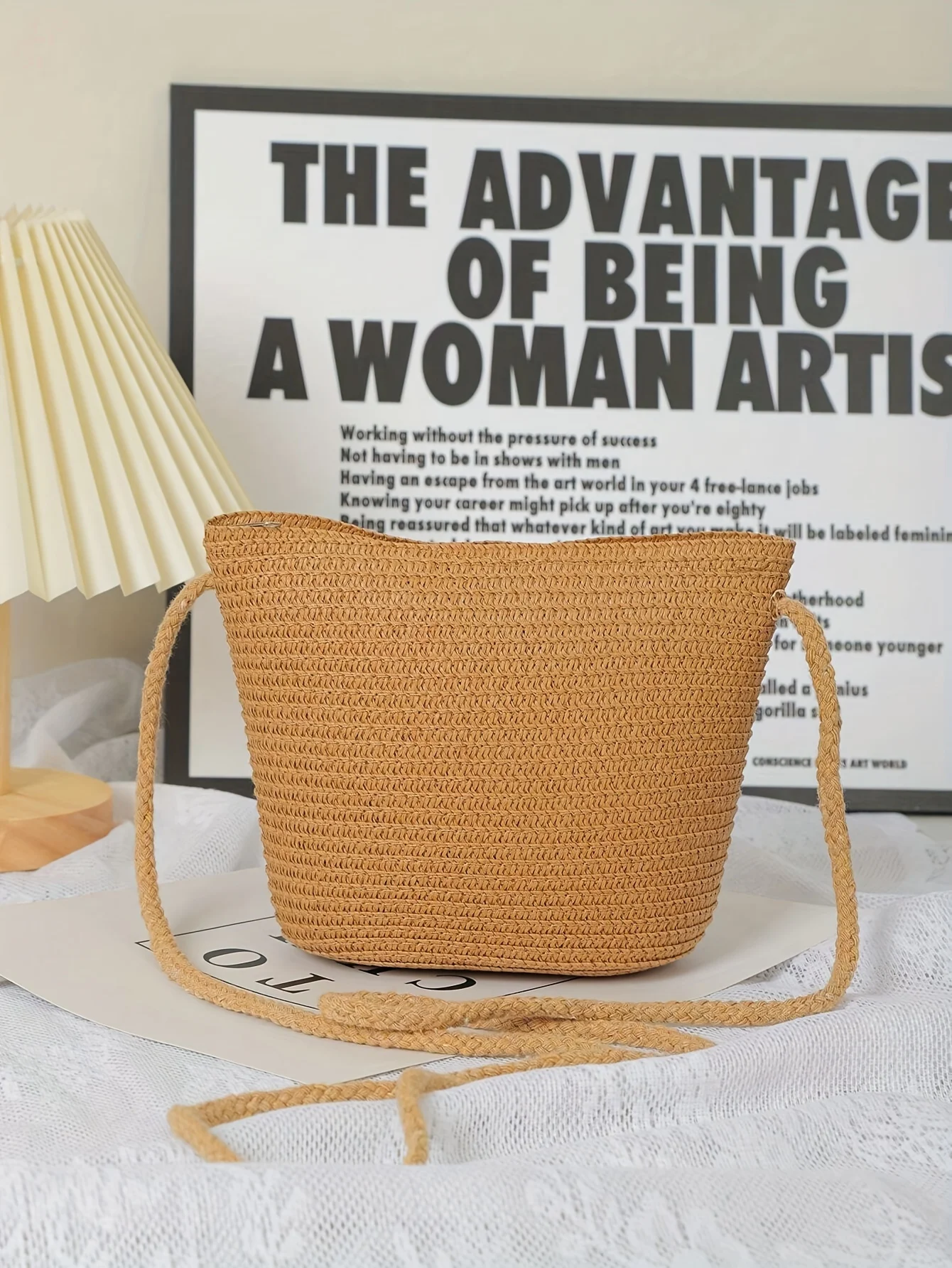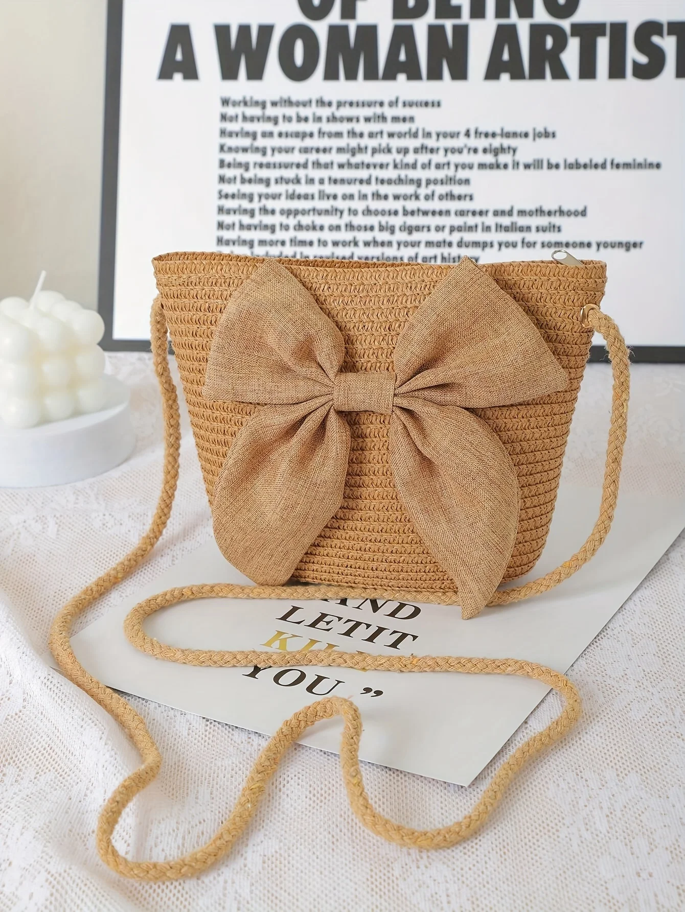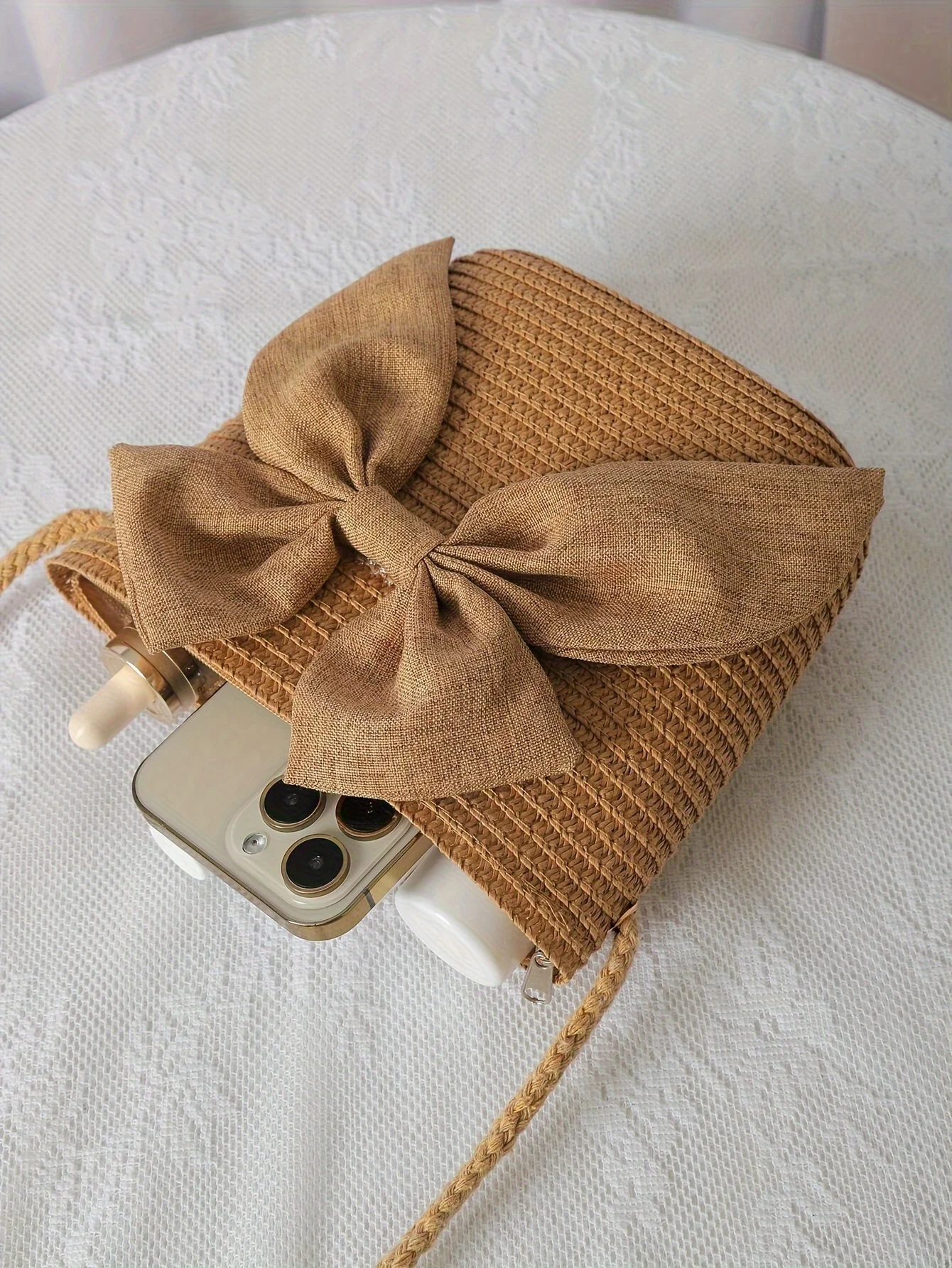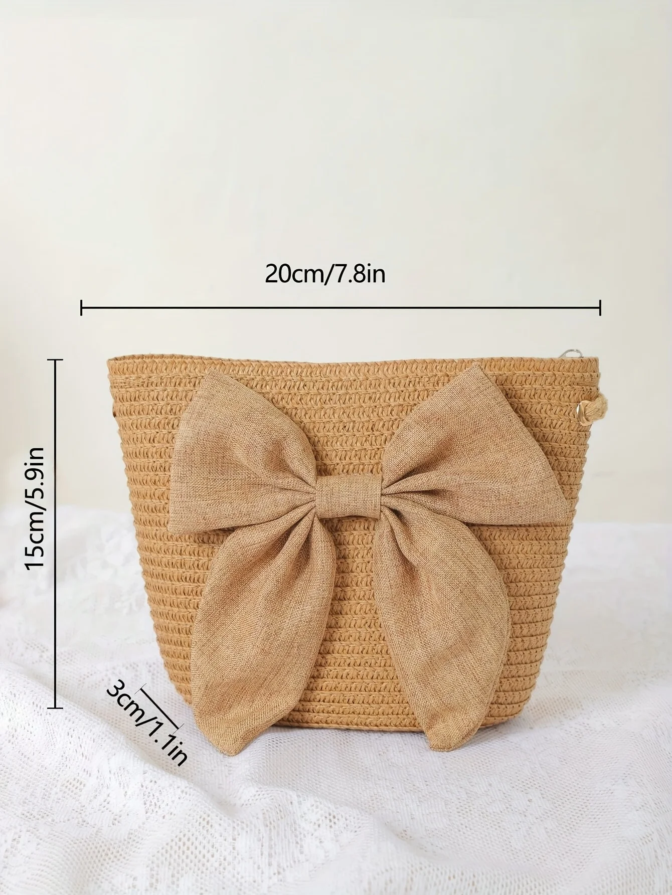 حقيبة كروس أنيقة من القش باللون البيج – نسيج منسوج، سحاب للإغلاق، مثالية لقضاء عطلات الشاطئ وحفلات الزفاف والنزهات الصيفية