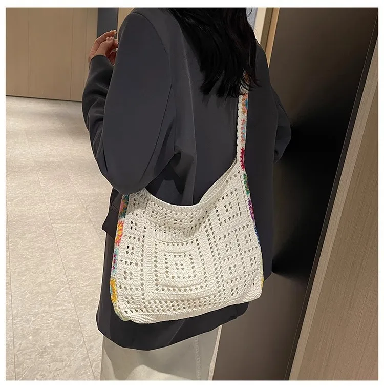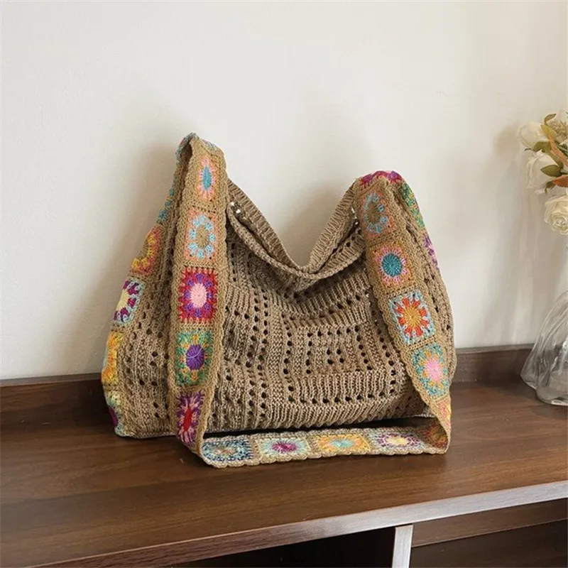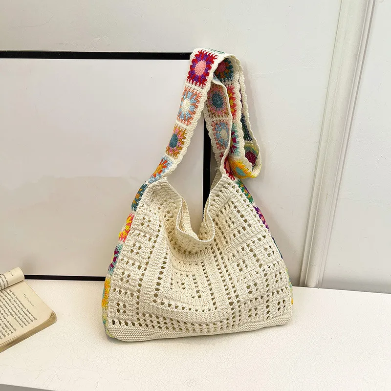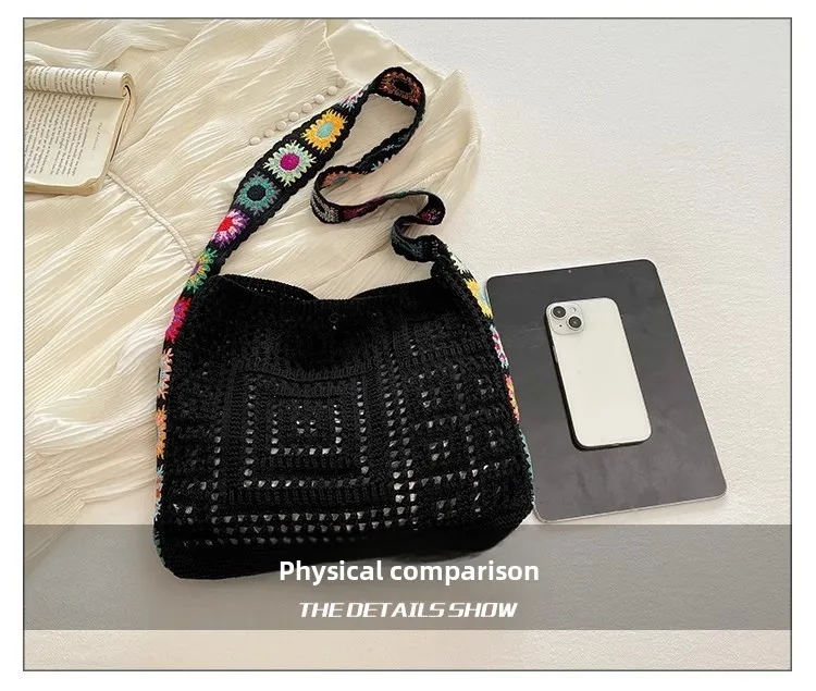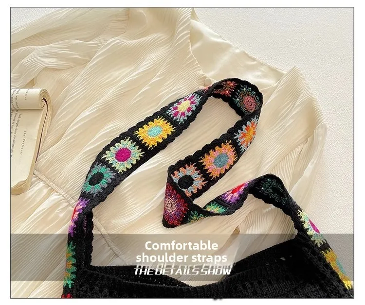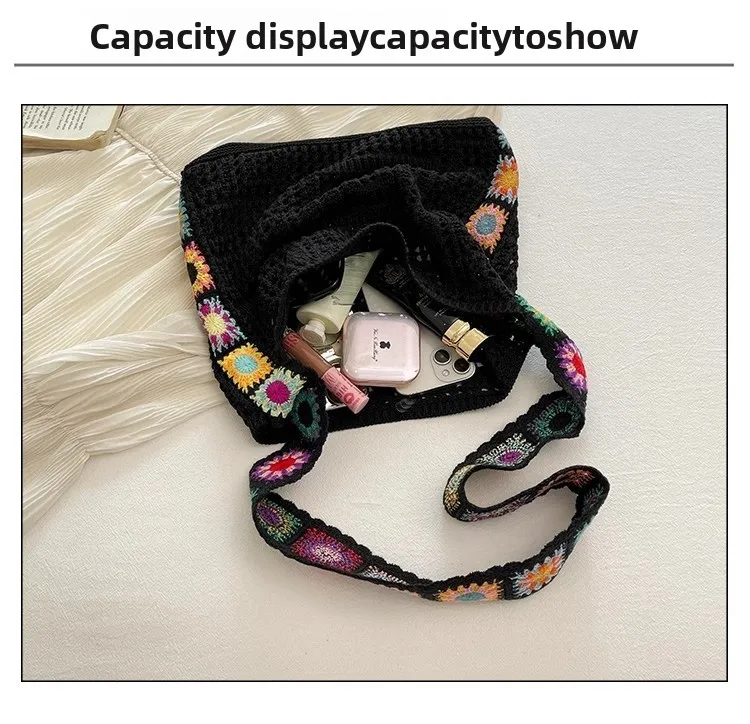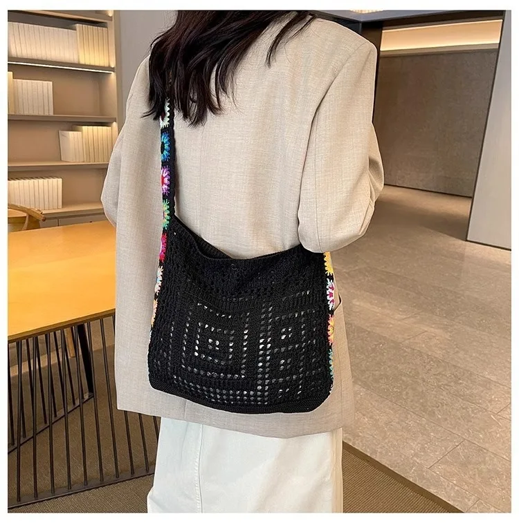 حقيبة كروس عصرية مجوفة منقوشة بالزهور، حقيبة كتف كروشيه أنيقة، حزام كتف على شكل زهور عشوائي