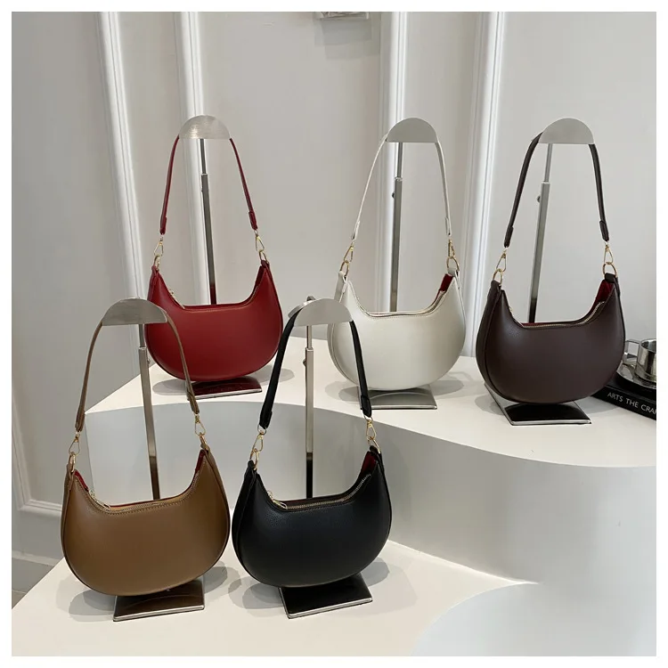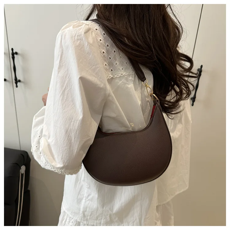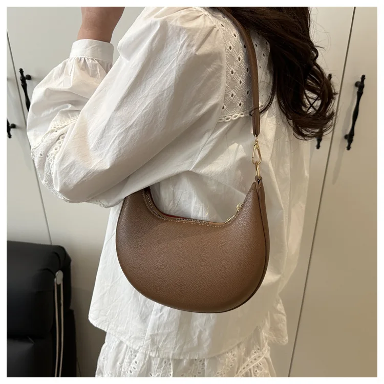 حقيبة كروس نسائية فاخرة على شكل هلال مع حزام قابل للتعديل قابل للفصل، محفظة كتف ذات إغلاق مغناطيسي ذهبي اللون R