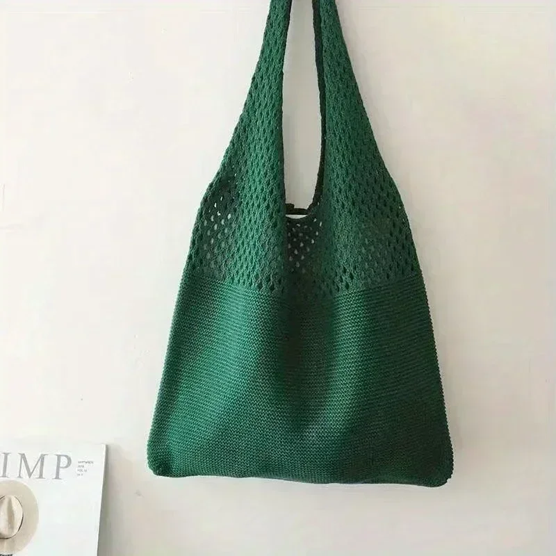 حقيبة كروشيه مجوفة بسيطة بتصميم عتيق، حقيبة تسوق ذات سعة كبيرة، حقيبة يد نسائية منسوجة، حقيبة كتف، عطلة الشاطئ، السفر للاستخدام اليومي