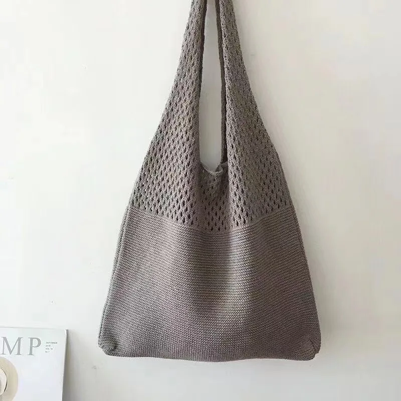 حقيبة يد شبكية بسيطة محبوكة أنيقة ومتعددة الاستخدامات وحقيبة كتف ذات سعة كبيرة مناسبة للاستخدام اليومي والعمل والتسوق والسفر والنزهة