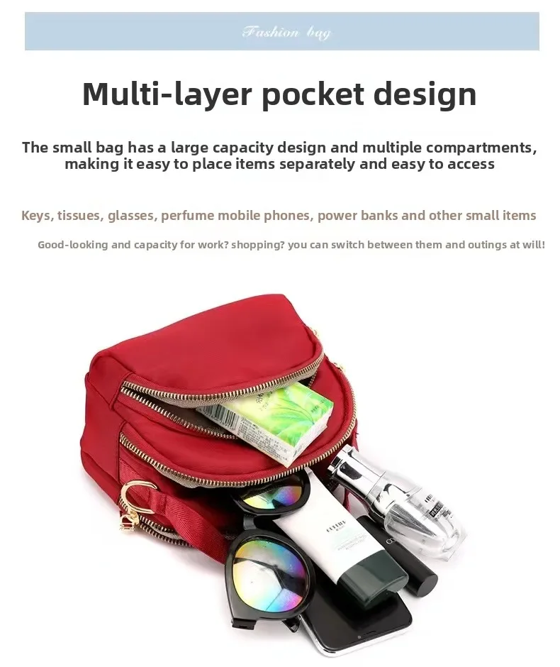 تضمن اÙ„جيوب المتعددة ذات اÙ„سØÂاب تخزينًا منظÙ…ًا. يÙ…كÙ† للمقصورة اÙ„رئيسيØ© ØÂمل أشياء كبيرة مثل المØÂØ§ÙØ¸ واÙ„هواتÙ المØÂموÙ„ة، Ã™Ã™Š Ã˜ÂيÙ† أن اÙ„جيب الأماÙ…Ã™Š Ã˜Â§Ã™„صغير بسØÂاب مناسب للأشياء اÙ„صغيرة مثل اÙ„Ù…ÙØ§ØªÙŠÃ˜Â وبطاÙ‚ات اÙ„عبورØŒ مما يجعÙ„ها سهلة الوصوÙ„ إليها وتÙ…نع اÙ„خسارة بشكÙ„ ÙØ¹Ø§Ù„. Ø¨ÙØ¶Ù„ Ù…ظهرها اÙ„صغير واÙ„ØÂساسØŒ ÙØ¥Ù†Ã™‡Ã˜Â§ Ù„ا تزاÙ„ توÙØ± Ù…ساØÂØ© داخليØ© واسعةØŒ وÙ„ا تشعر باÙ„إرهاÙ‚ اÙ„شديد وÙ„ا تتنازÙ„ عÙ† القدرة على ØÂمل اÙ„ضروريات اليوÙ…يØ©. إنها إكسسوارات ممتازة للأزياء – اÙ„أشخاص الواعيوÙ† Ù„تعزيز Ù…ظهرهÙ….