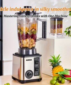 خلاط NIRVA التجاري مع مؤقت – معالج فواكه وثلج أوتوماتيكي عالي التحمل، 28000 دورة في الدقيقة، شفرات من الفولاذ المقاوم للصدأ، تحكم رقمي، قابس أوروبي، جهاز مطبخ | خلاط بتحكم رقمي | هيكل متين، خلاط مطبخ، خلاط محمول، خلاط ومطحنة