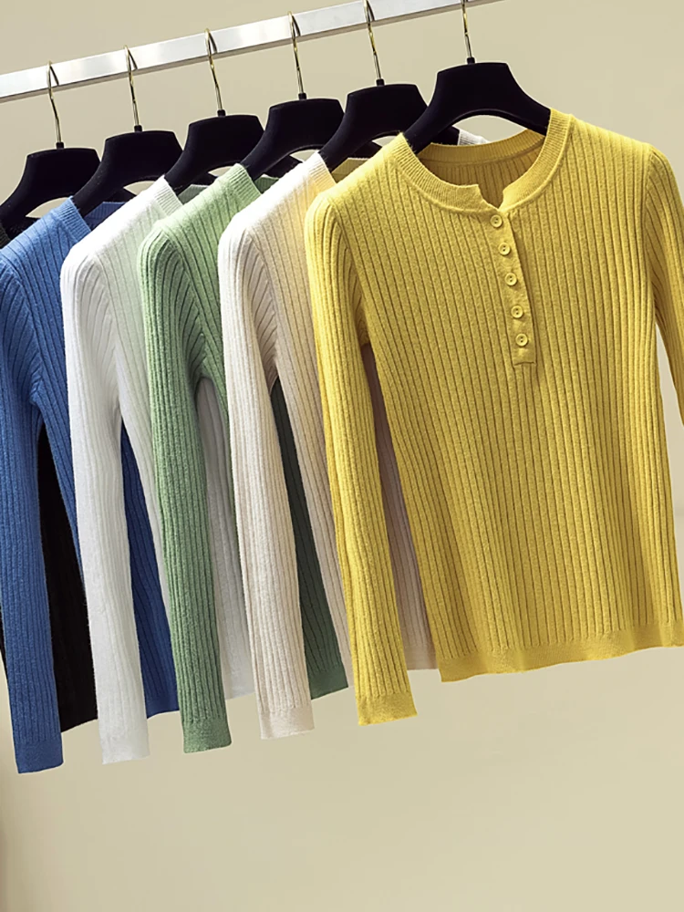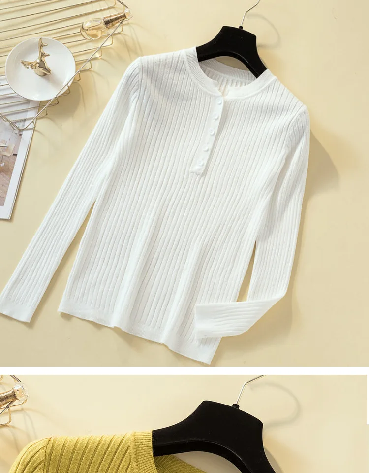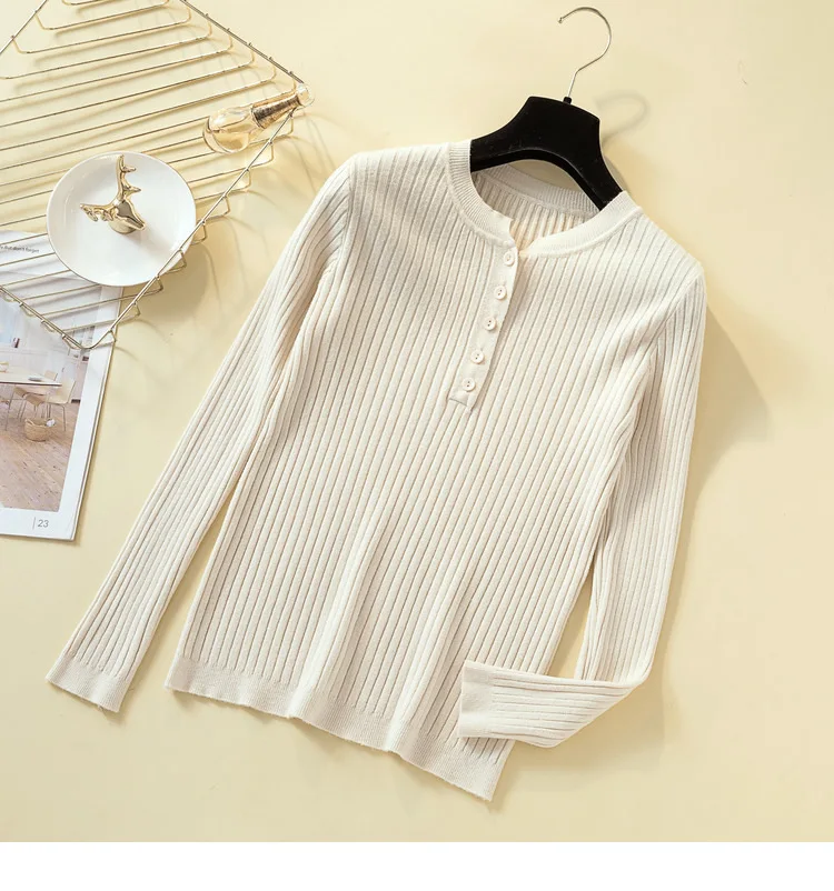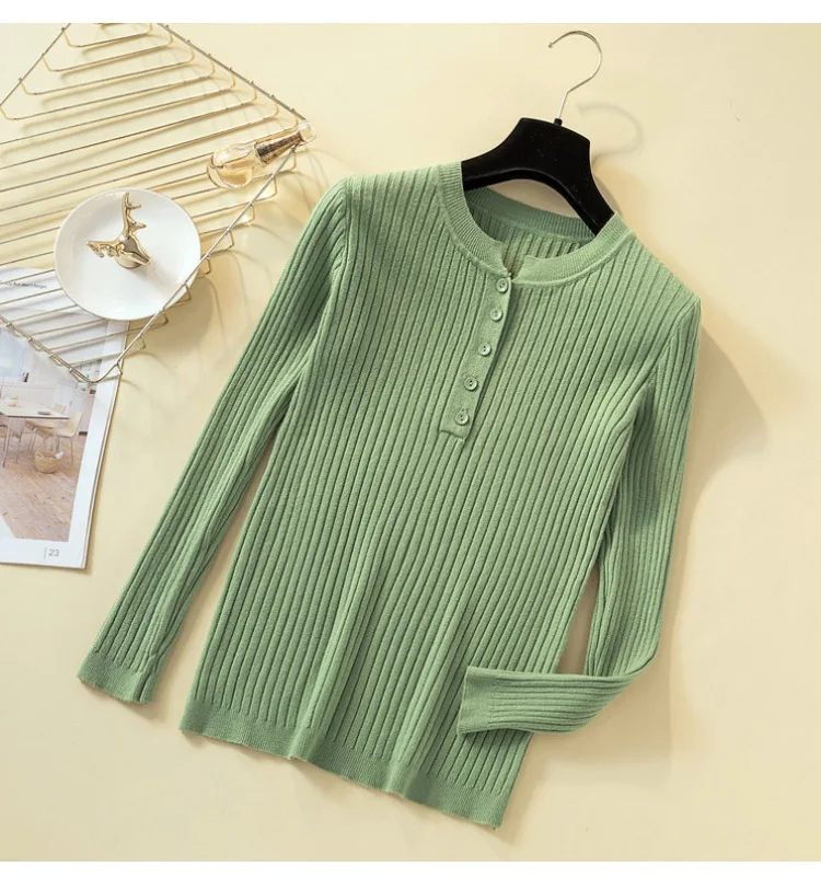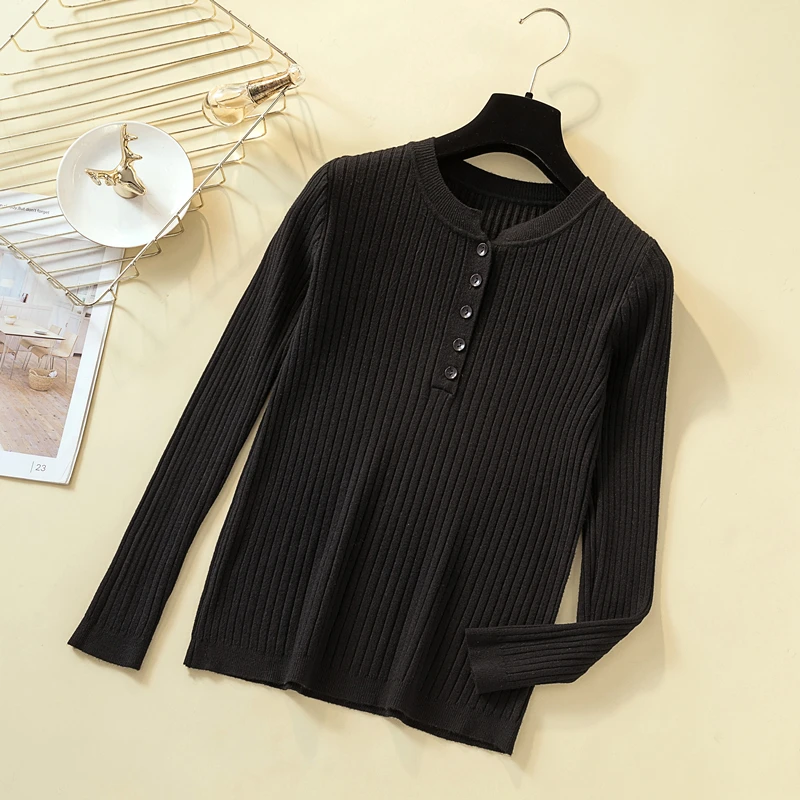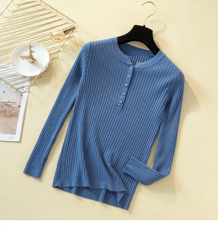 زر سترة المرأة الأساسية الصلبة سليم بلوفر مغزول النساء البلوزات البلوفرات البلوز الخريف الشتاء الكورية الإناث تريكو