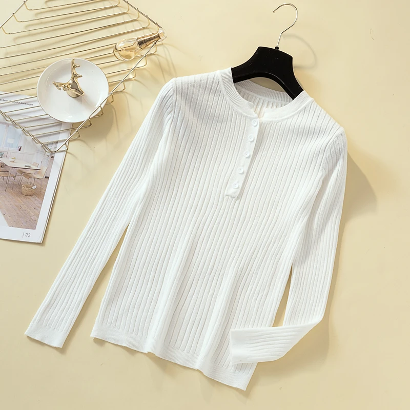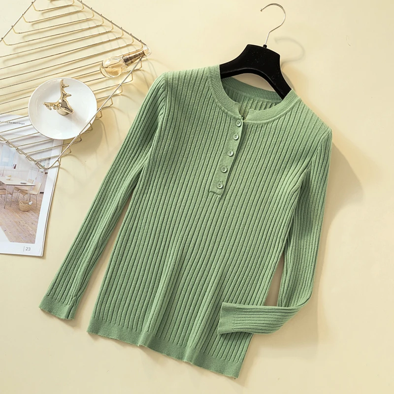 زر سترة المرأة الأساسية الصلبة سليم بلوفر مغزول النساء البلوزات البلوفرات البلوز الخريف الشتاء الكورية الإناث تريكو