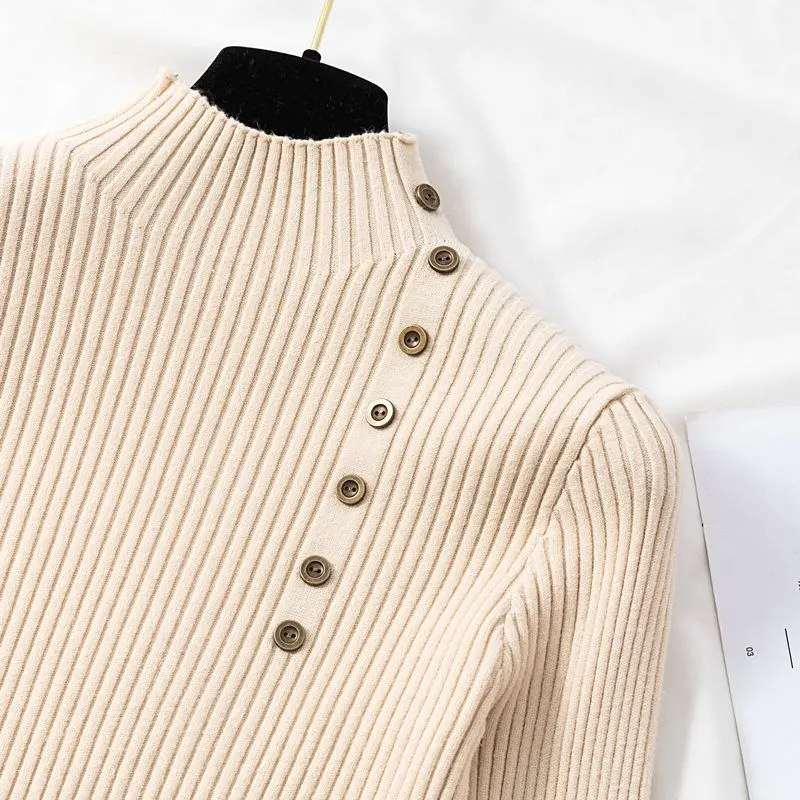سترات نسائية محبوكة بياقة مدورة لخريف 2025 من القطن المحبوك الصلب بلوفرات ضيقة مرنة بأزرار وأكمام كاملة