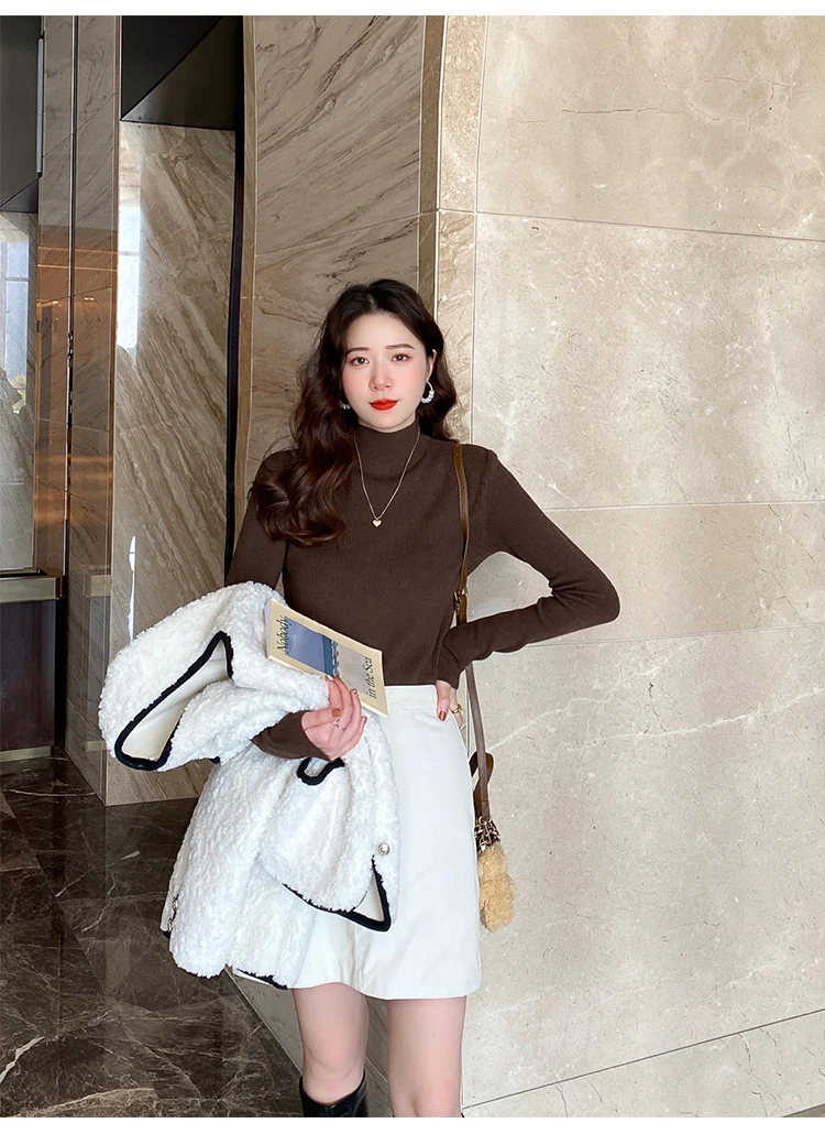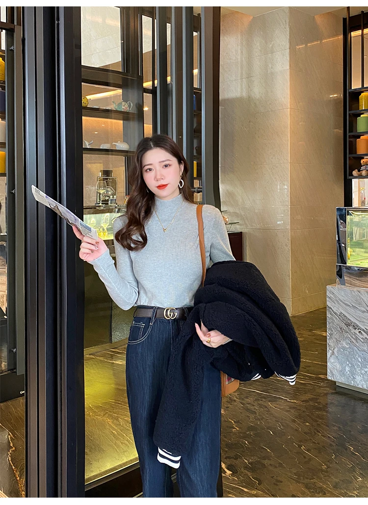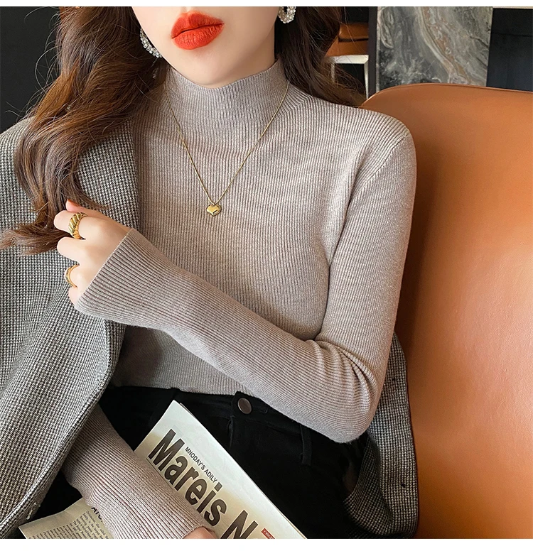 سترة نسائية جديدة ذات ياقة مدورة لعام 2025 بلوفرات نسائية محبوكة بأكمام طويلة سترة محبوكة