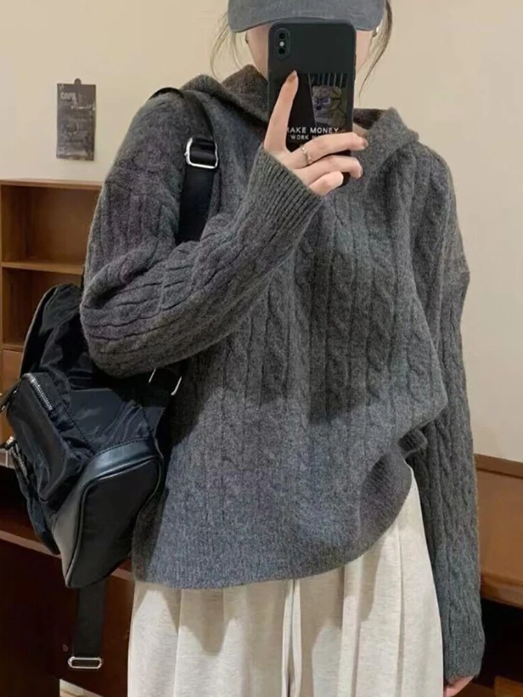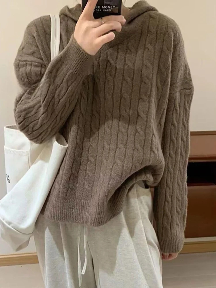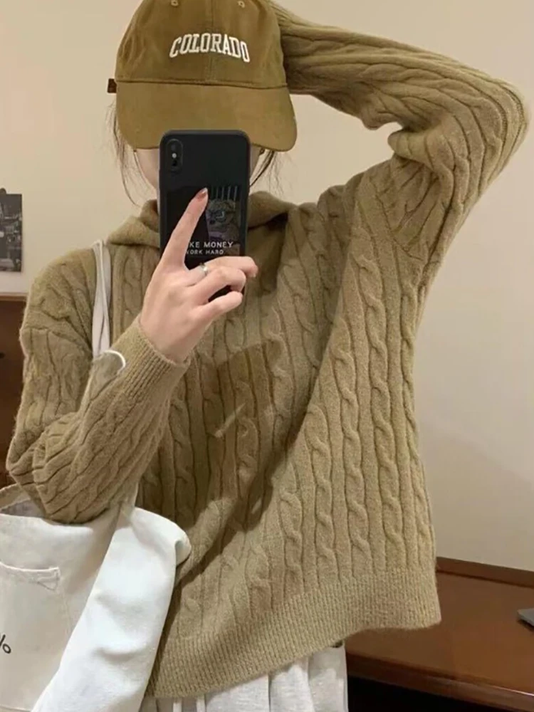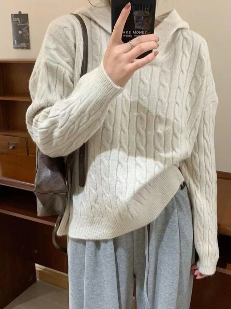 سترة نسائية كورية من AOSSVIAO سترات فضفاضة ذات ياقة مدورة بلوفر دافئ متين ملابس تريكو أساسية للسيدات لخريف وشتاء 2025