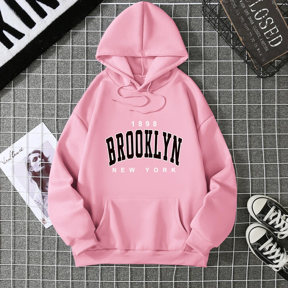 سويت شيرت بقلنسوة مطبوع على الموضة لعام 2025 Y2K بلوفر بأكمام طويلة متعدد الاستخدامات