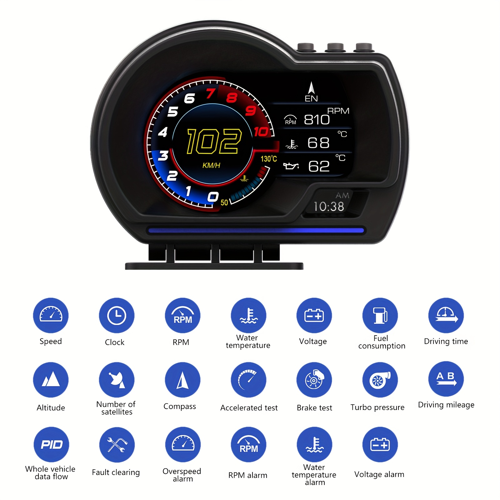 شاشة عرض رأسية للسيارة OBD2 HUD+GPS – عداد سرعة 8.89 سم وكمبيوتر رحلة، اتصال لاسلكي، يعمل بالبطارية (36 فولت) لجميع السيارات، نظام عرض لوحة القيادة سهل التركيب، أداة أداء السيارة، شاشة عرض لوحة القيادة المدمجة، حامي شاشة متين، بدون بطارية