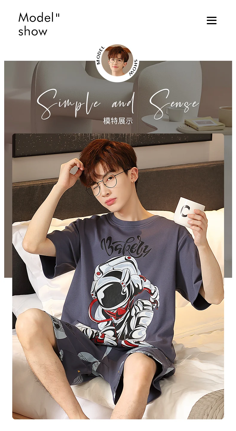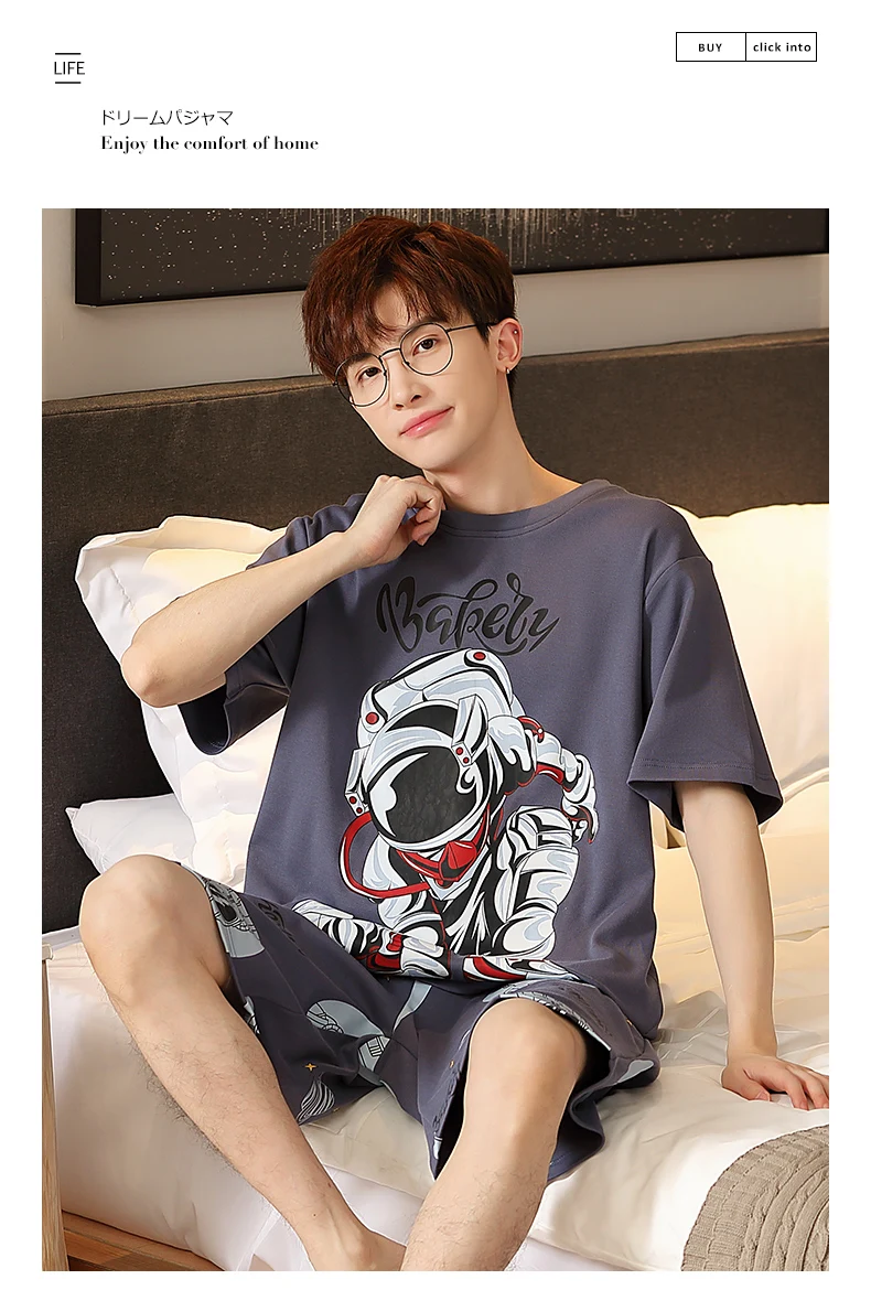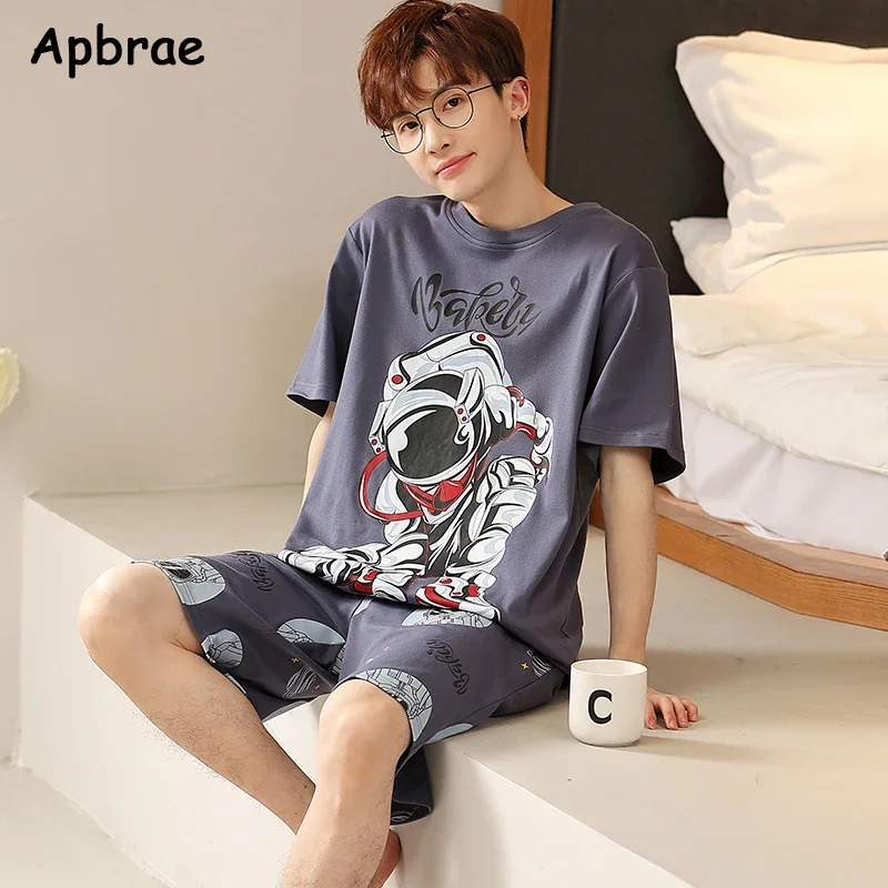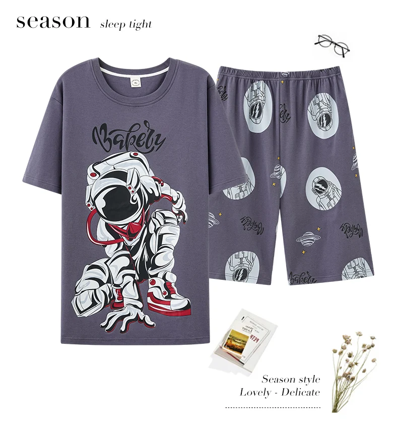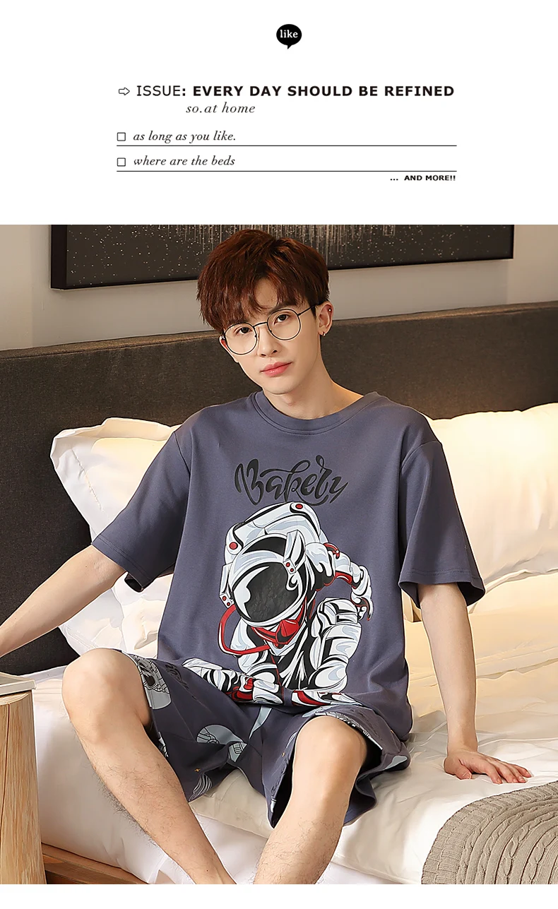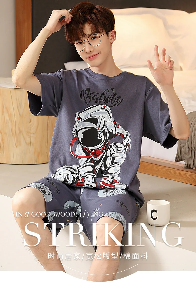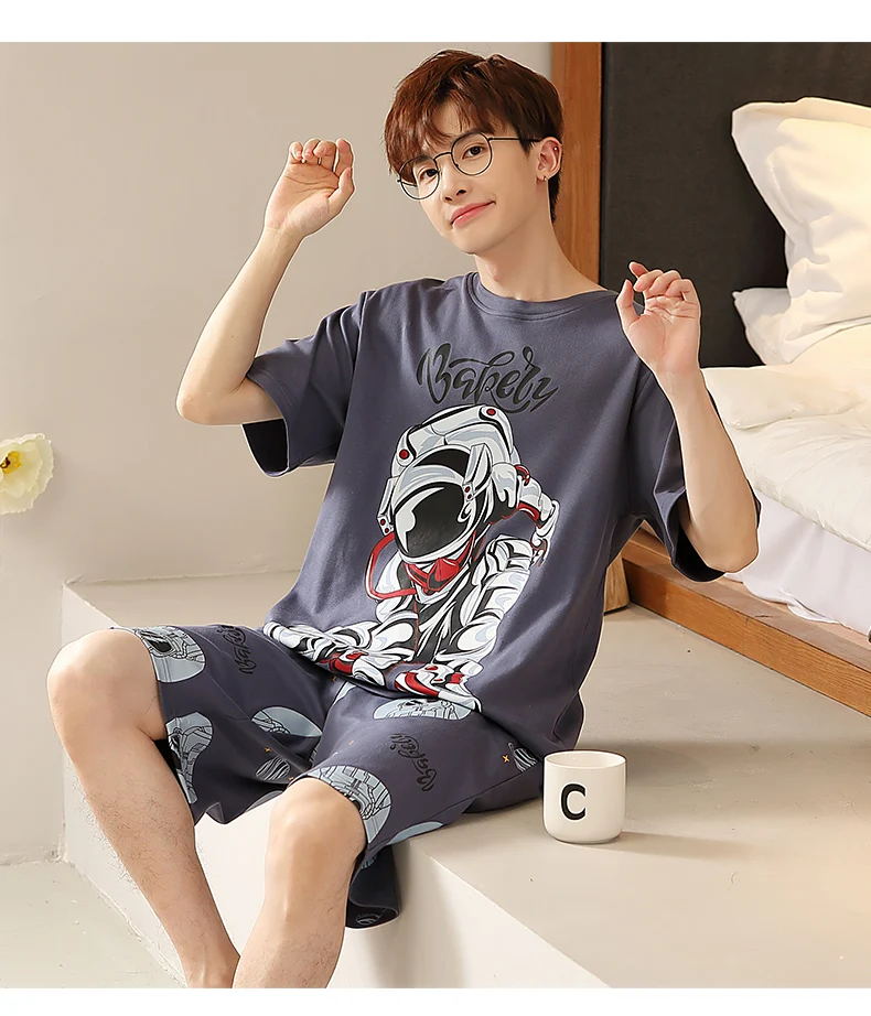 طقم بيجامات رجالي صيفي مطبوع عليه رسوم كرتونية شورتات قصيرة بيجامات قطن رجالي ملابس نوم عصرية فضفاضة بيجامات منزلية مقاس كبير 4XL
