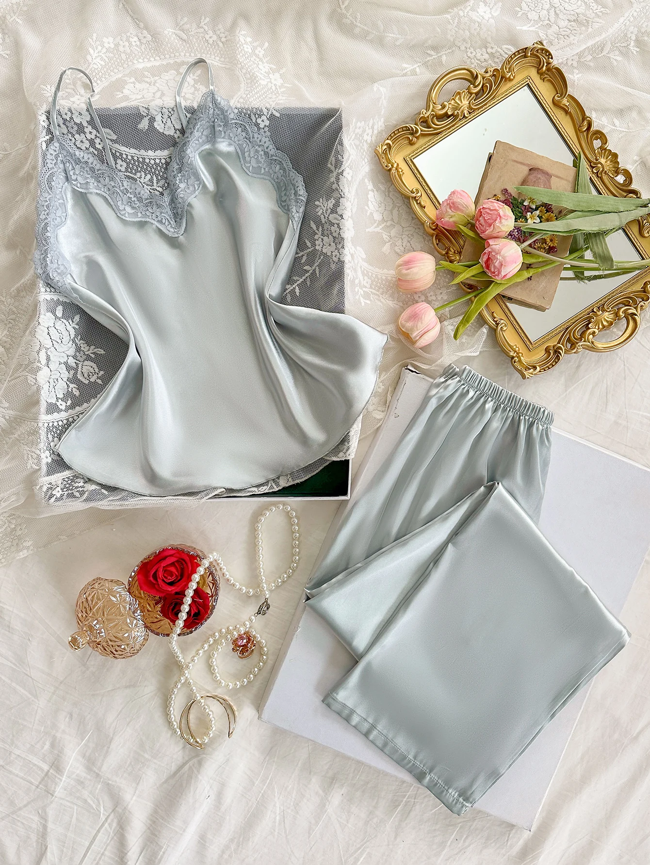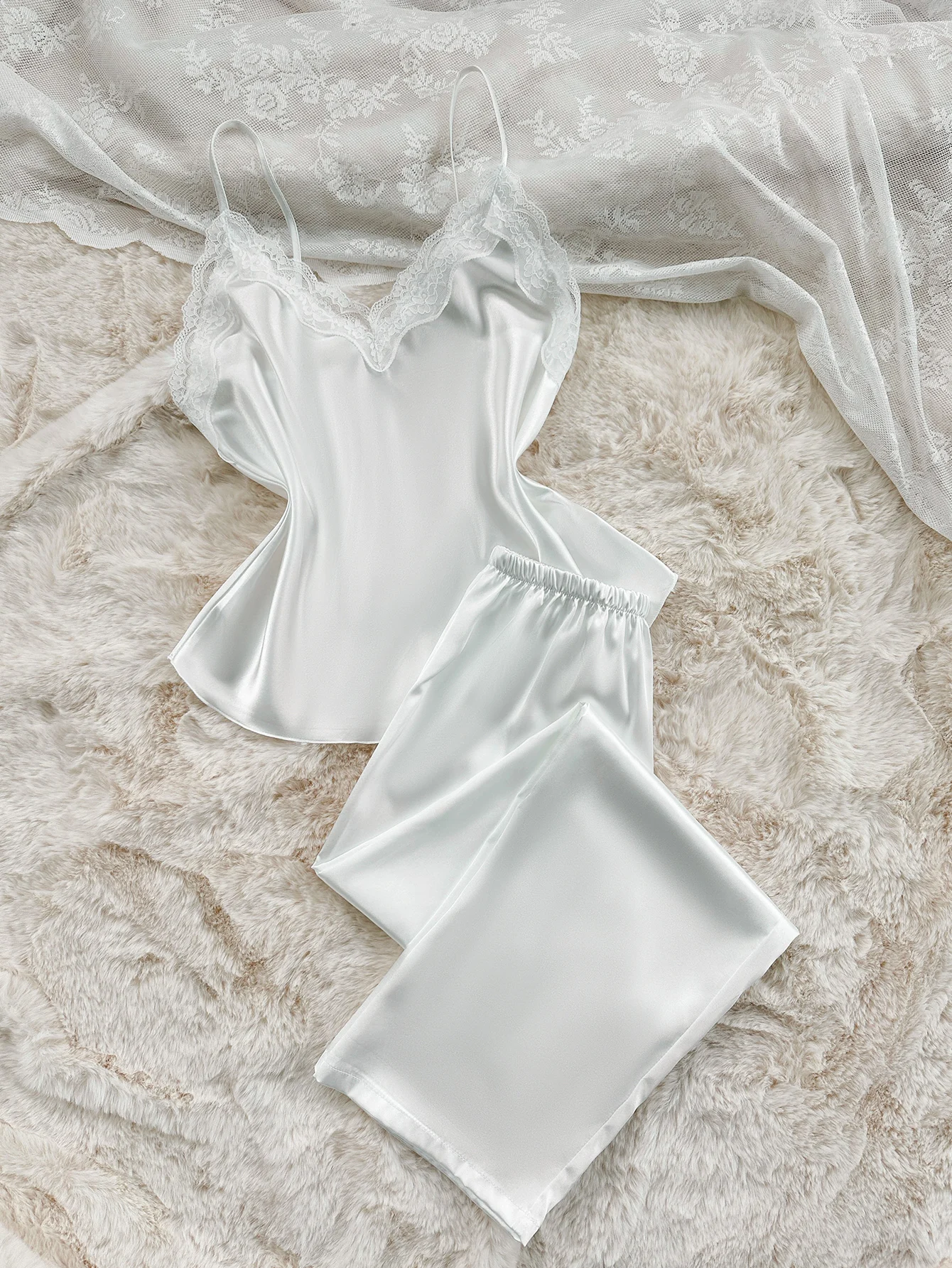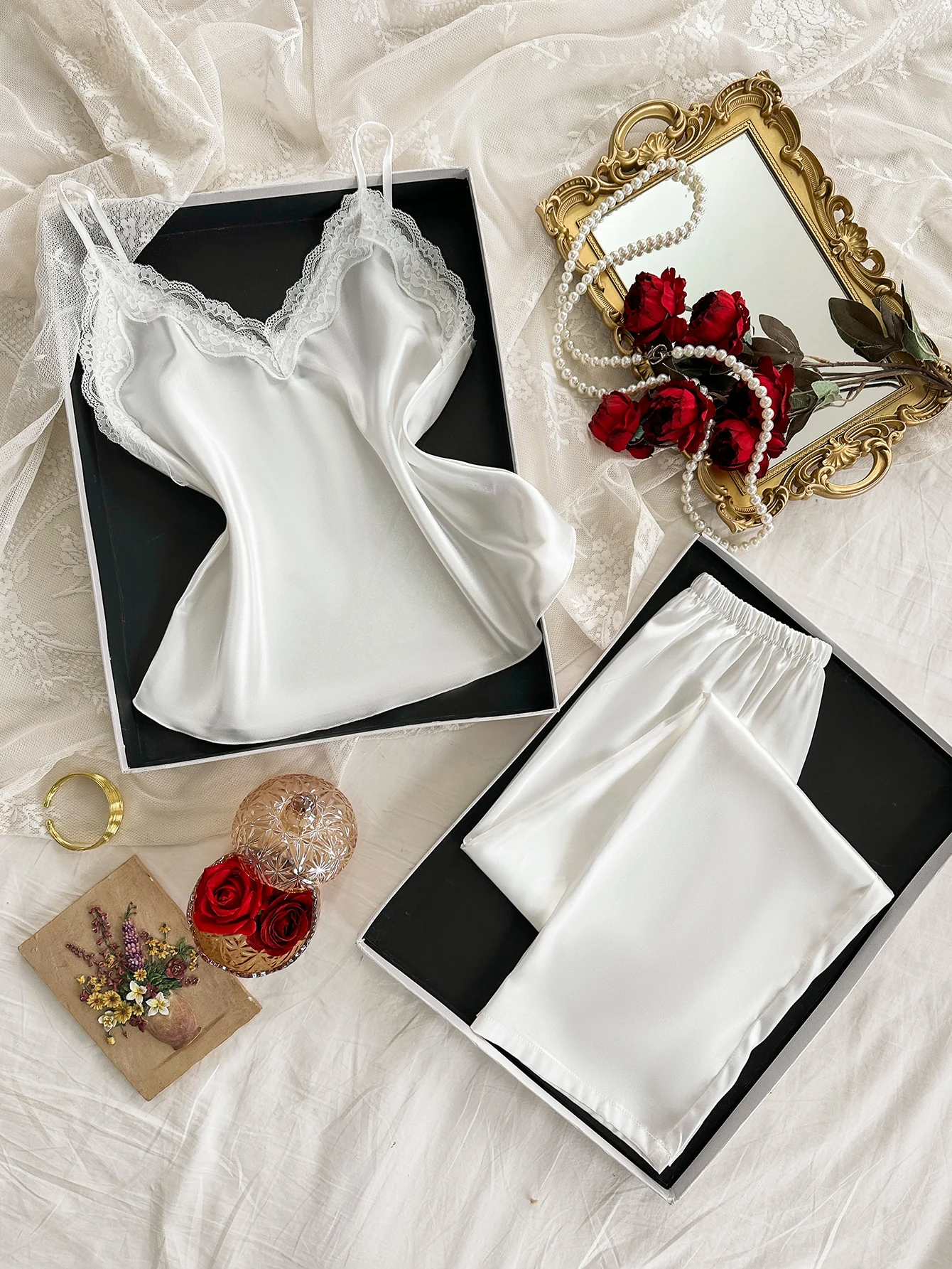 فستان نوم نسائي طويل مثير ، حرير ثلجي ، بيمنامة بحمالة رباط مغرية ، ملابس منزلية أنيقة ، الصيف ،