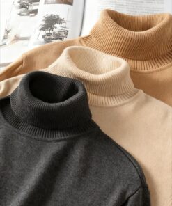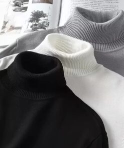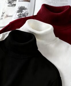 طقم سويتسرات رجالية كاجوال بياقة عالية محبوكة 3 قطع | لون موحد متعدد الاستخدامات، كم قصير، قماش مطاطي خفيف للخريف/الشتاء
