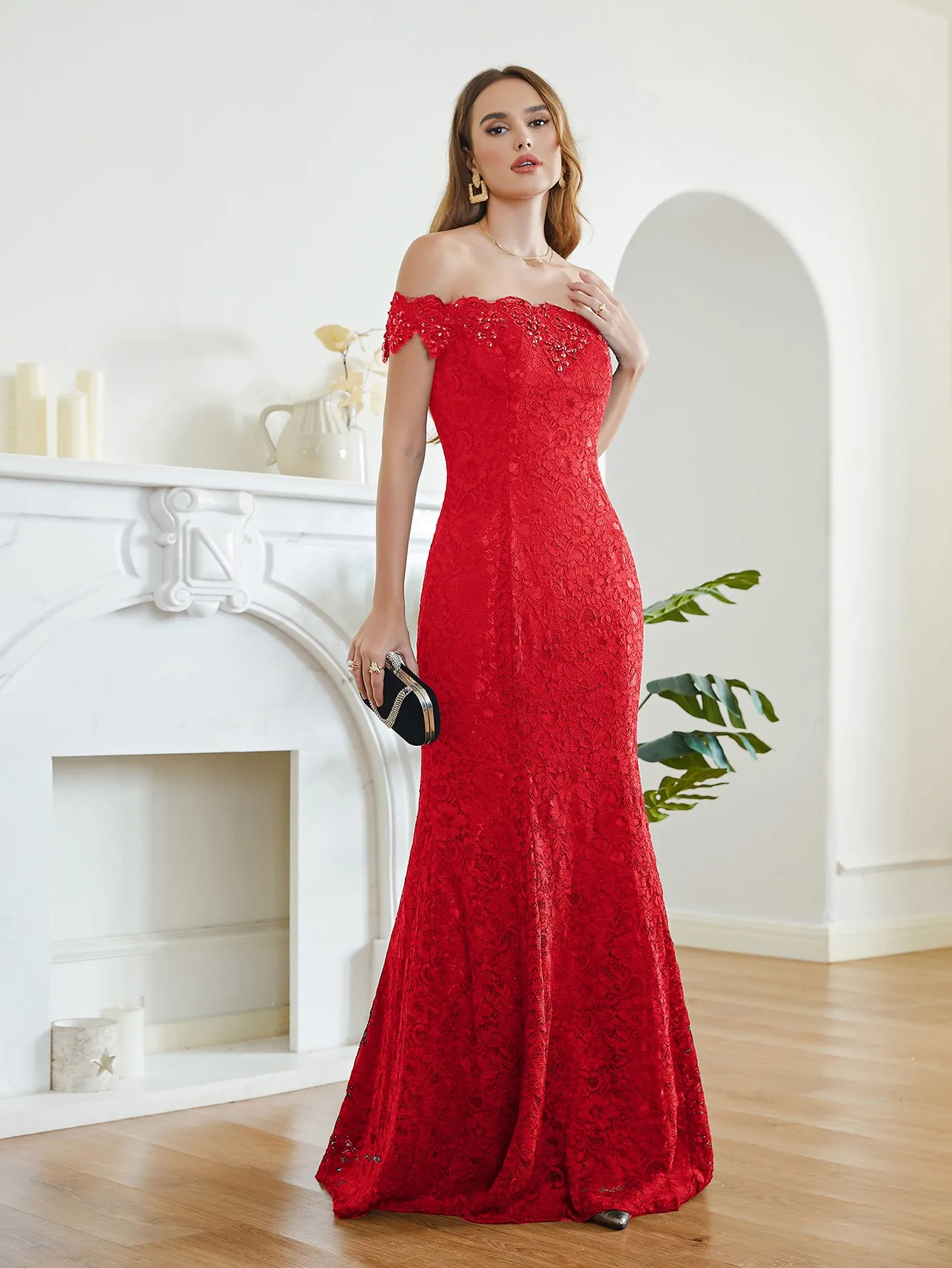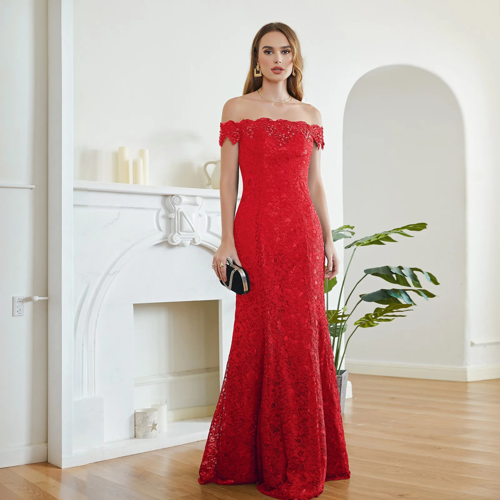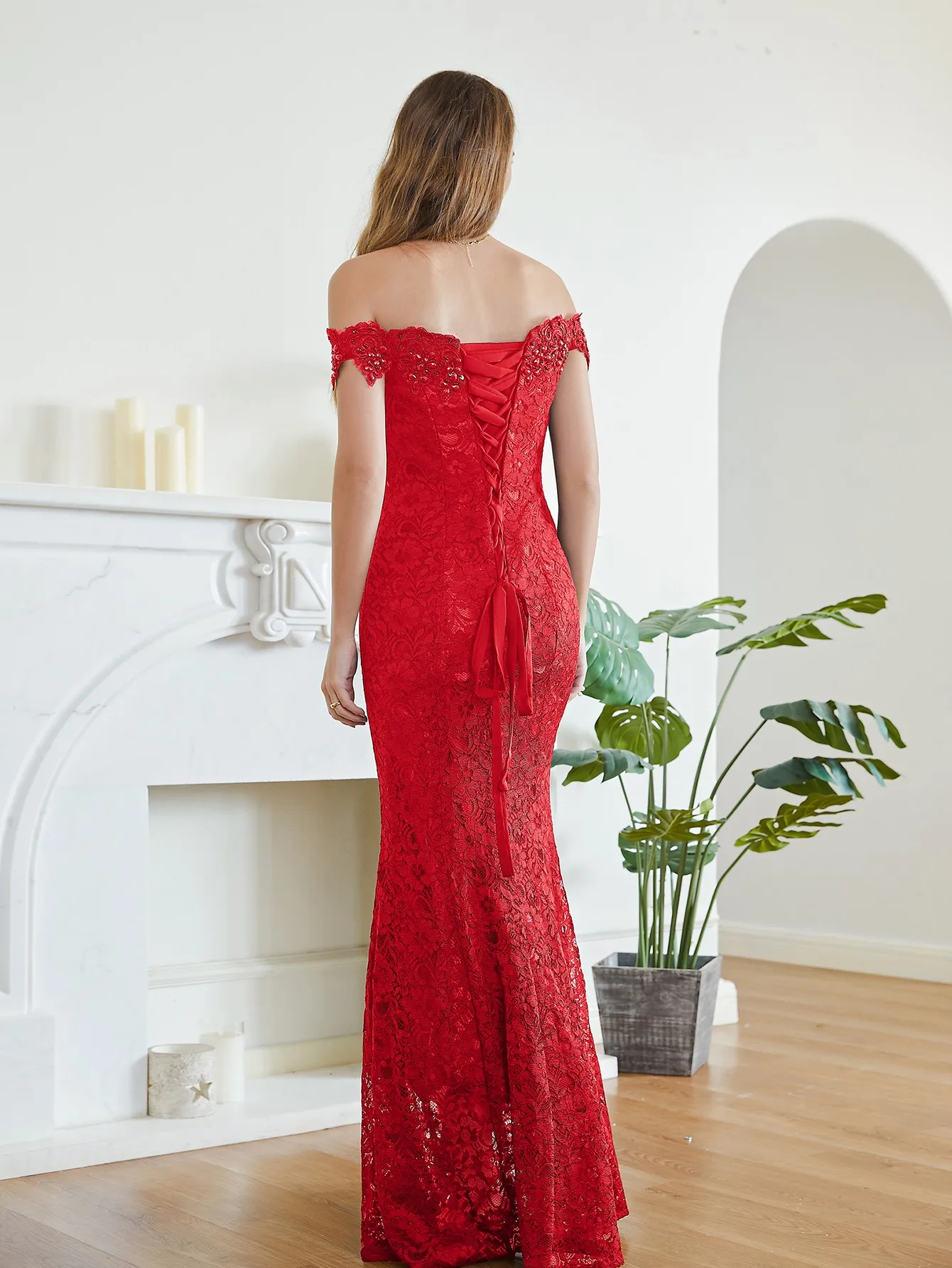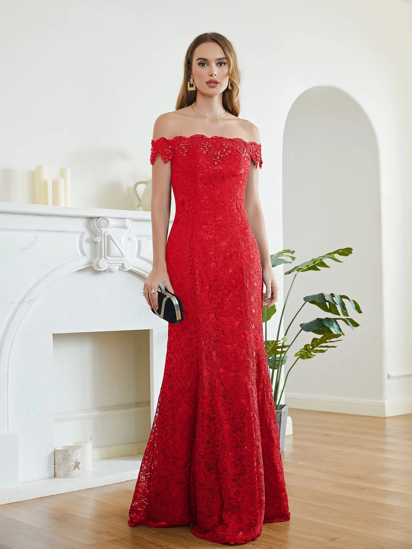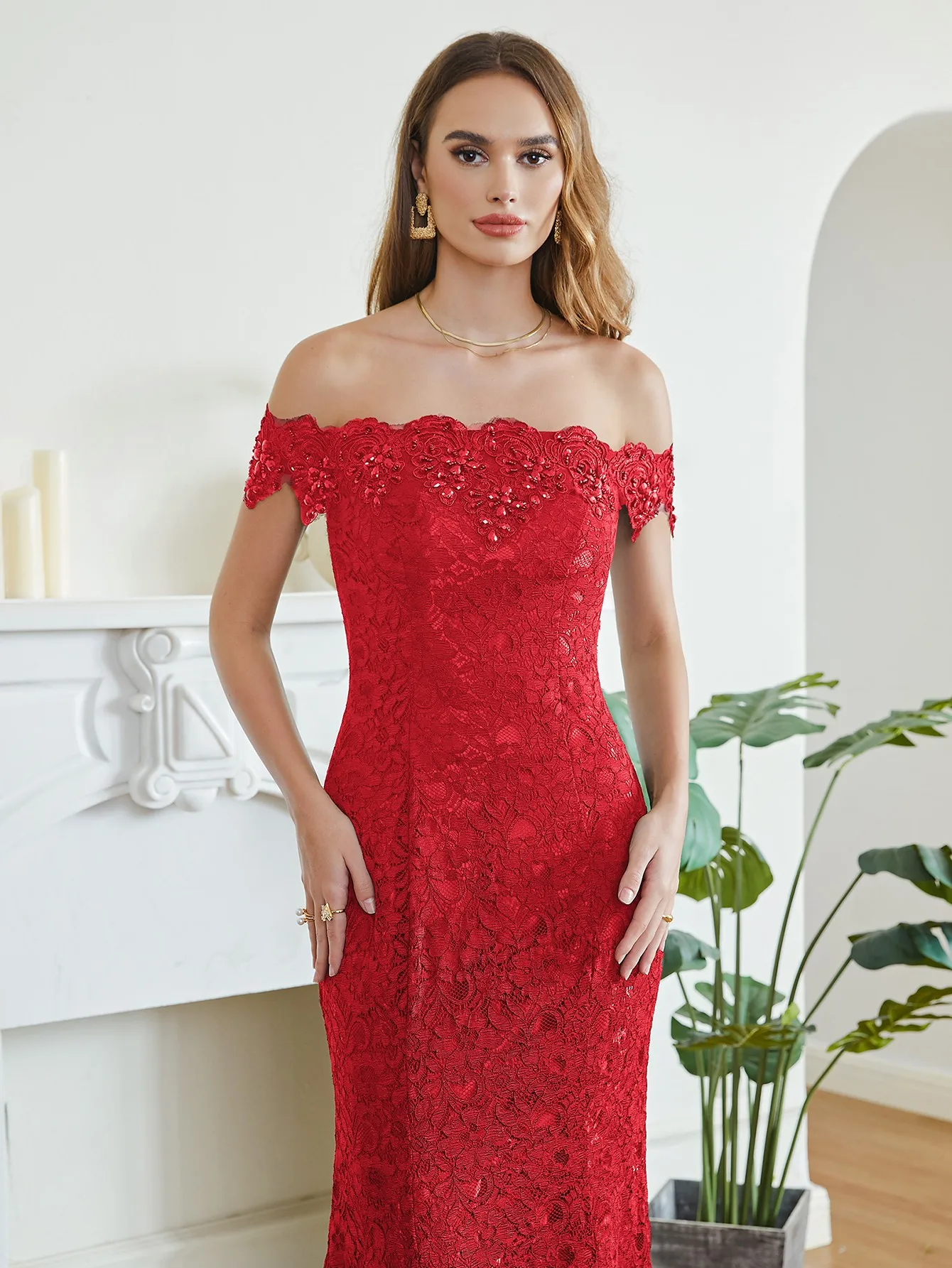 BABYONLINE فستان سهرة حورية البحر باللون الأسود بأكمام شفافة وخصر مطرز، فستان رسمي رومانسي للنساء