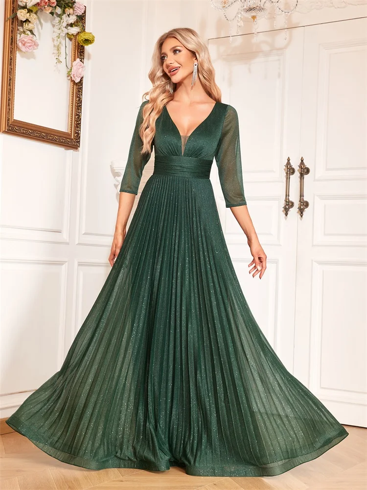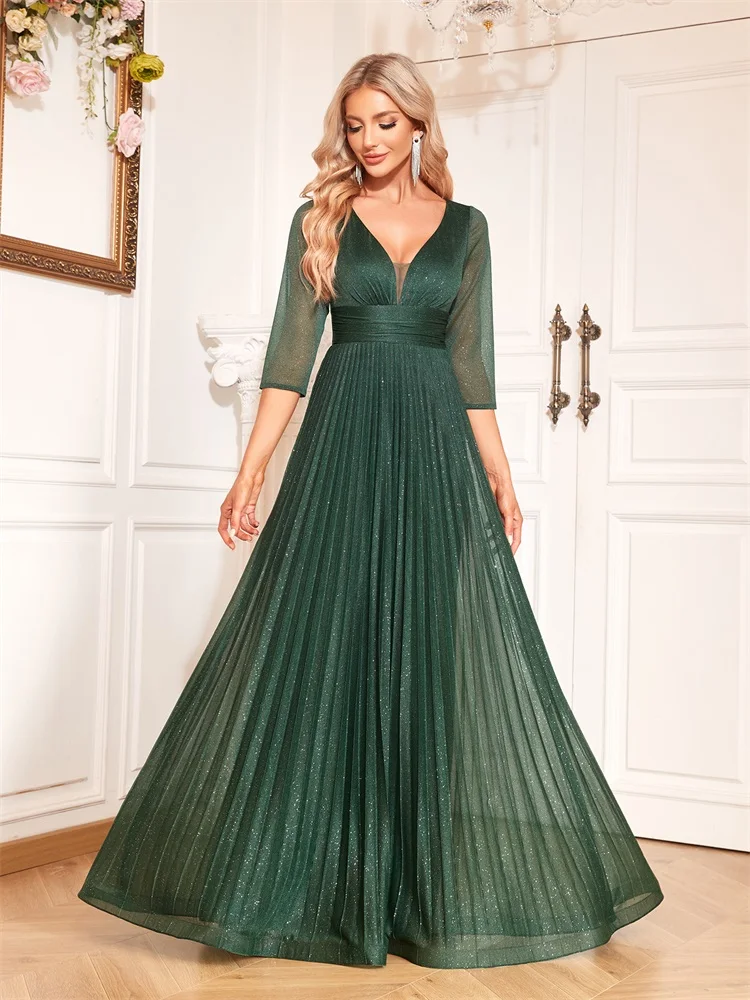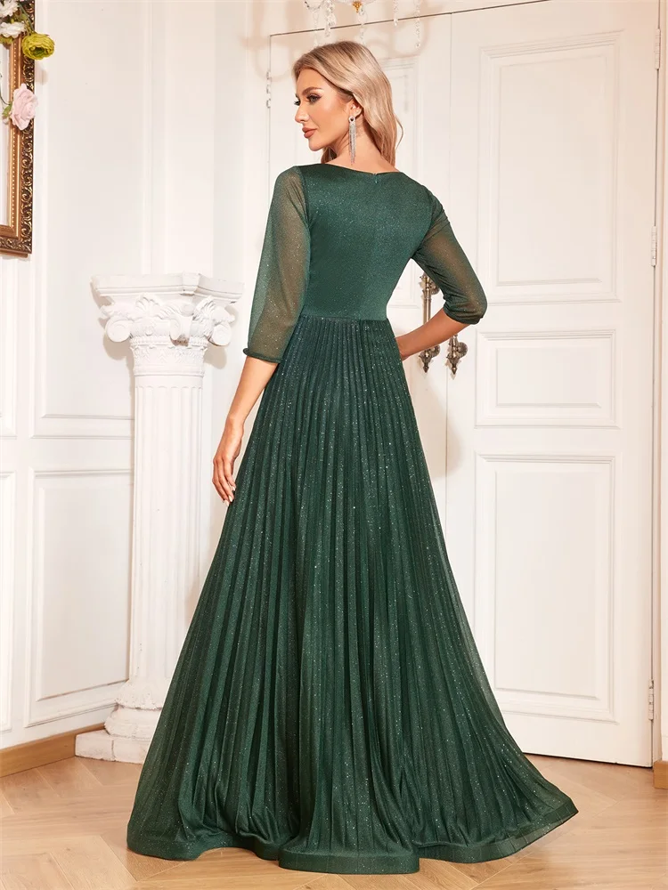 BABYONLINE فستان سهرة حورية البحر باللون الأسود بأكمام شفافة وخصر مطرز، فستان رسمي رومانسي للنساء