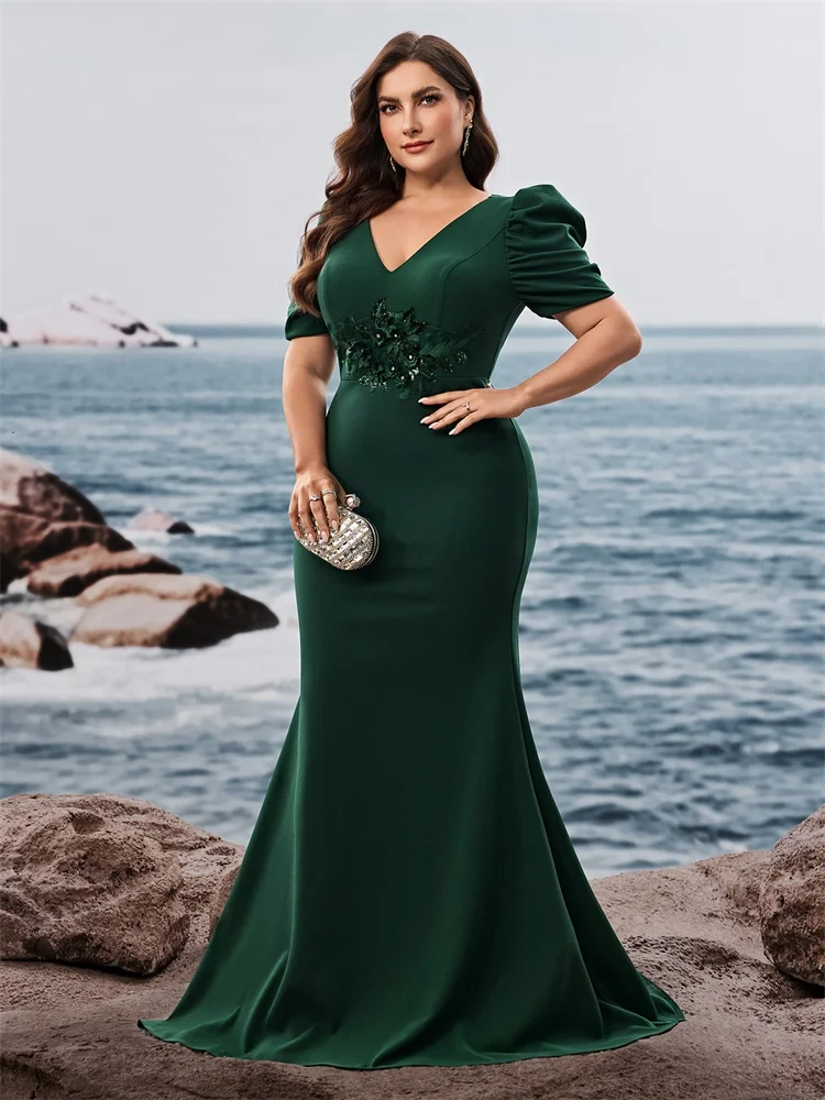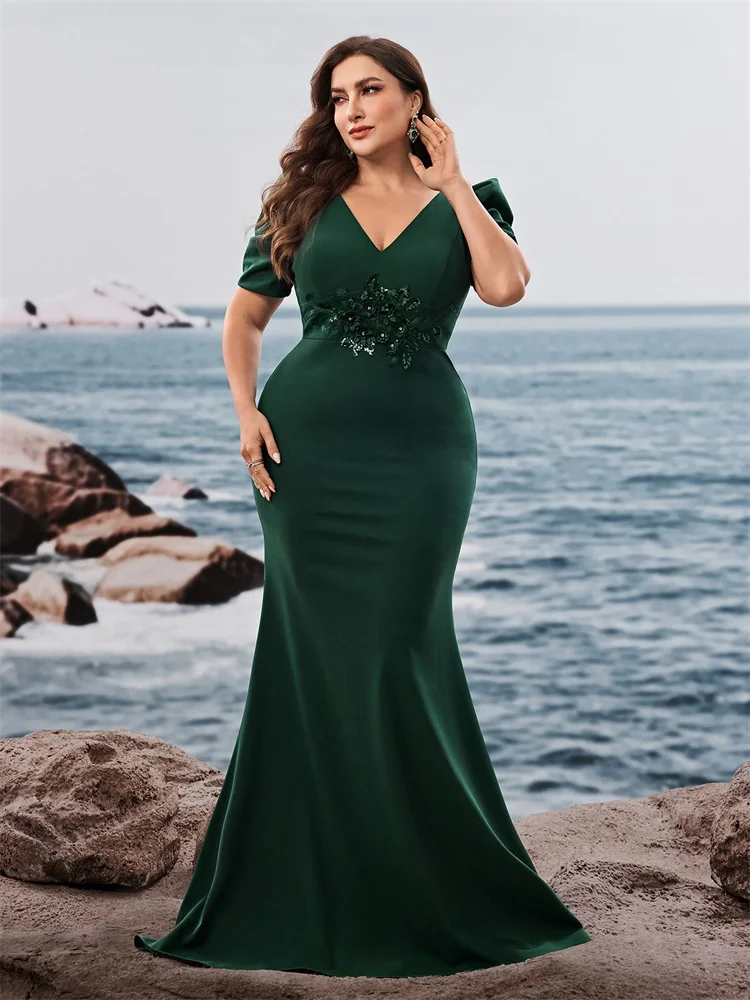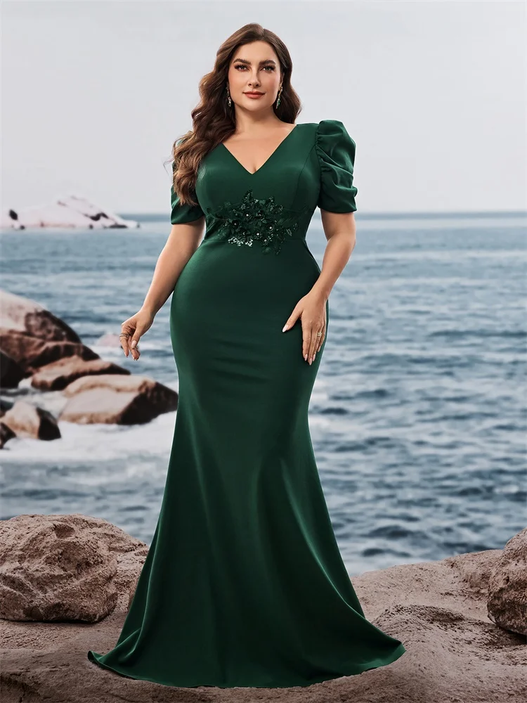 BABYONLINE فستان سهرة حورية البحر باللون الأسود بأكمام شفافة وخصر مطرز، فستان رسمي رومانسي للنساء