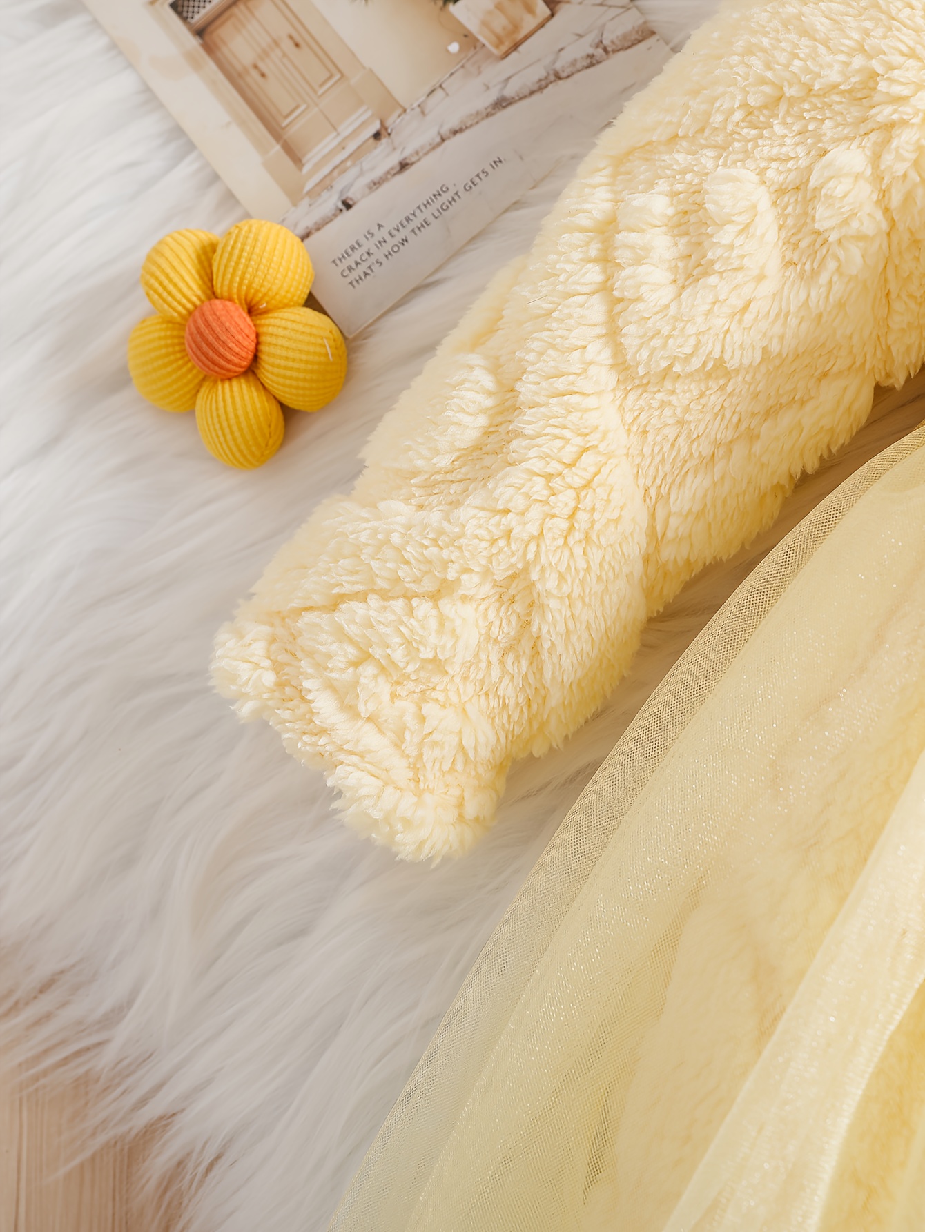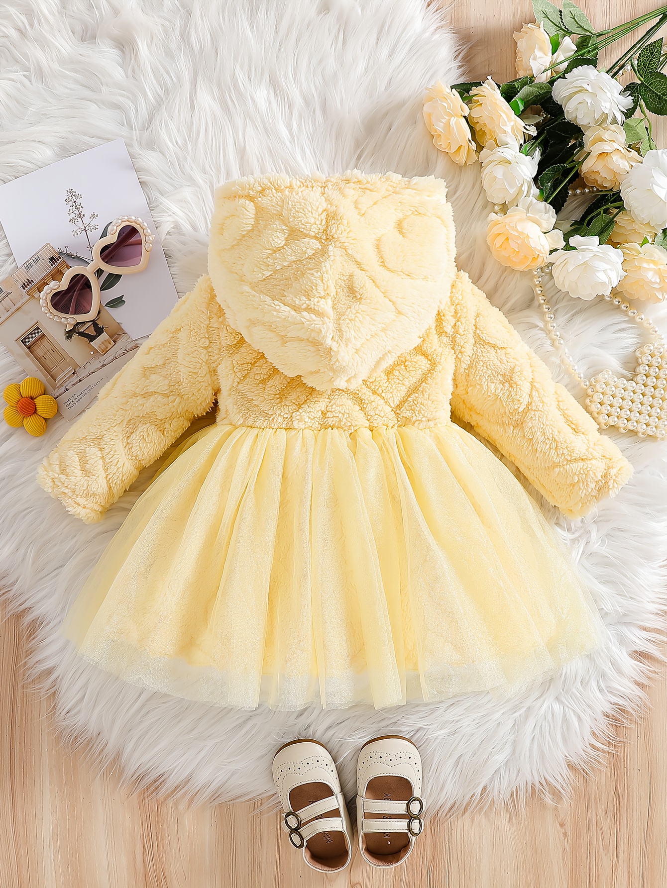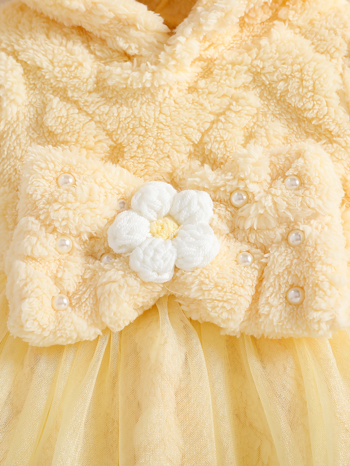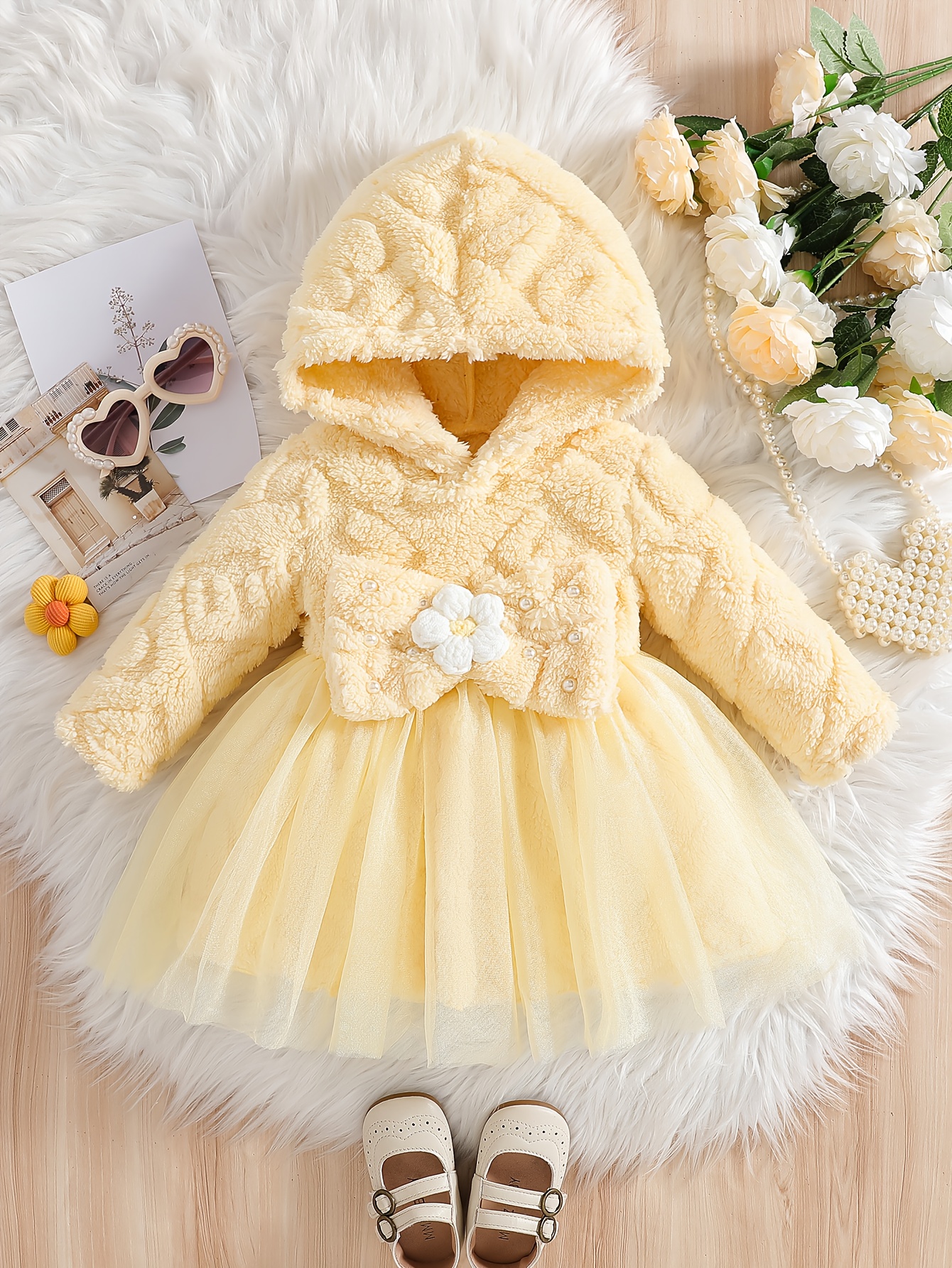 فستان شتوي للبنات الصغيرات بغطاء للرأس – أكمام طويلة من القطيفة الناعمة مع تزيينات زهور ثلاثية الأبعاد وتنورة من التول، مريحة ومطاطة، ملابس دافئة ومريحة لفصل الخريف والشتاء، أزياء أميرة جميلة، ملابس للبنات الصغيرات، ملابس شتوية للرضع، ملابس مريحة للرضع، قماش مرن متوسط المرونة